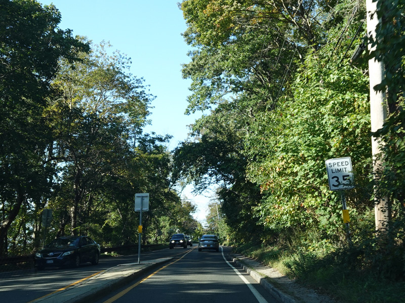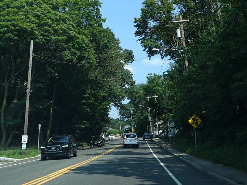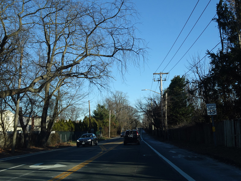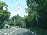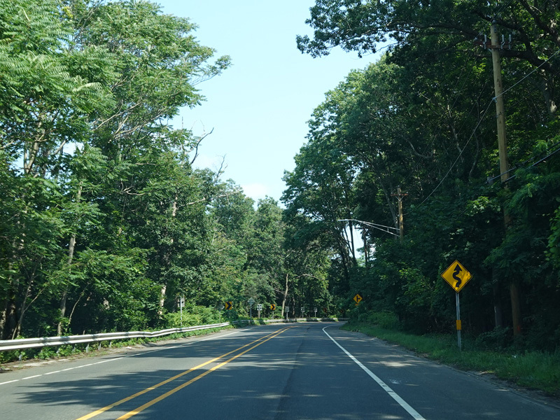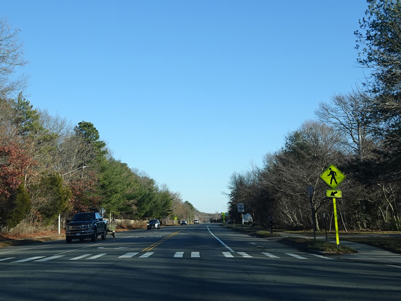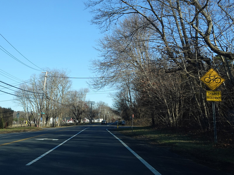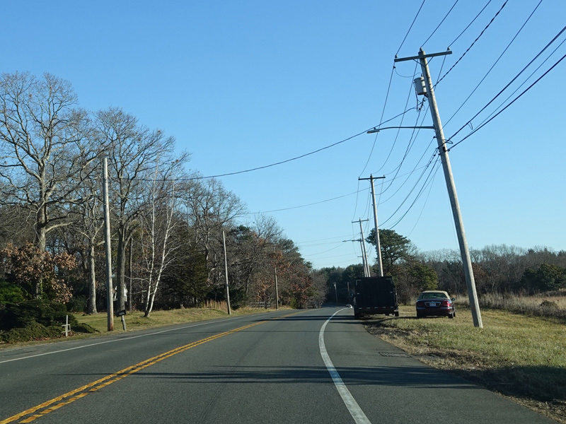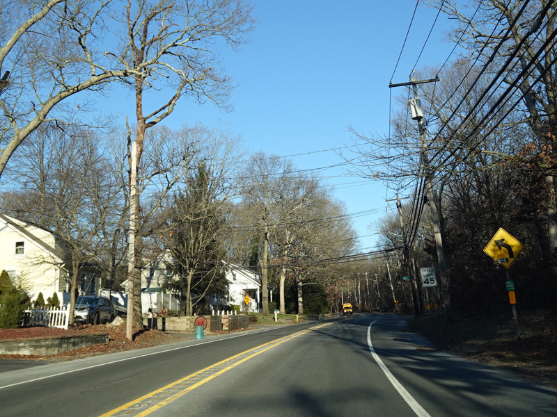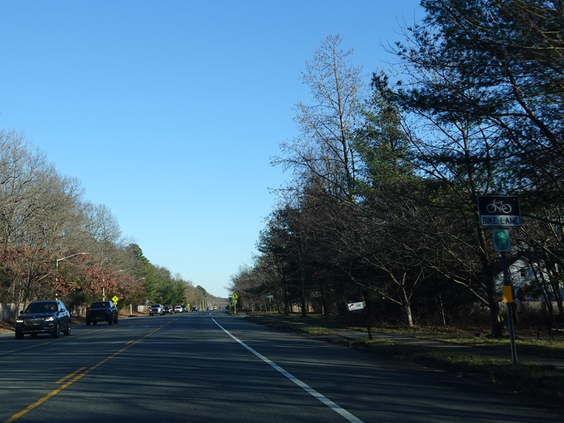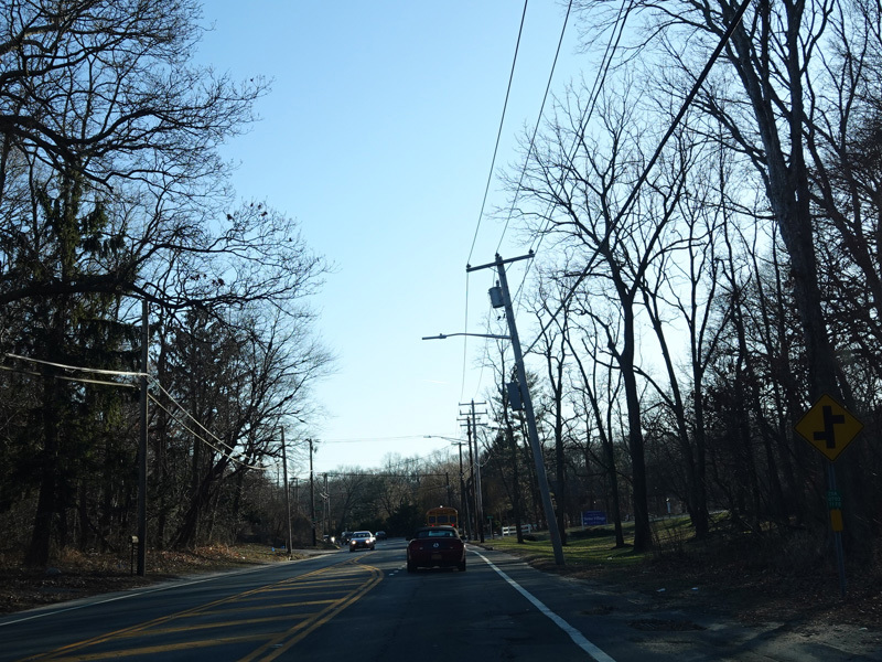 Skipping east to Mount Sinai, NY 25A merges with Nesconset Highway (NY 347) to form a four-lane undivided road.