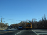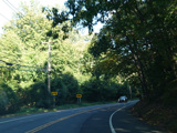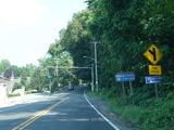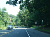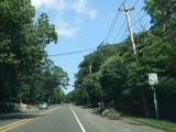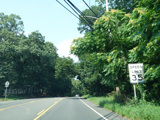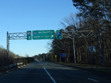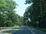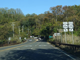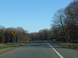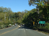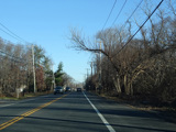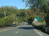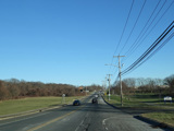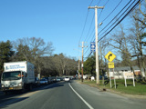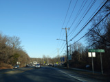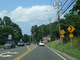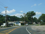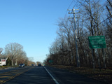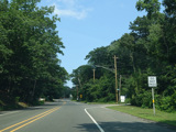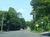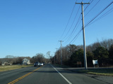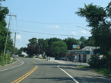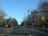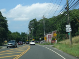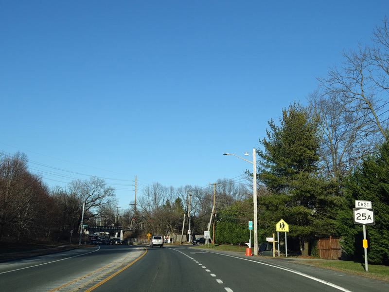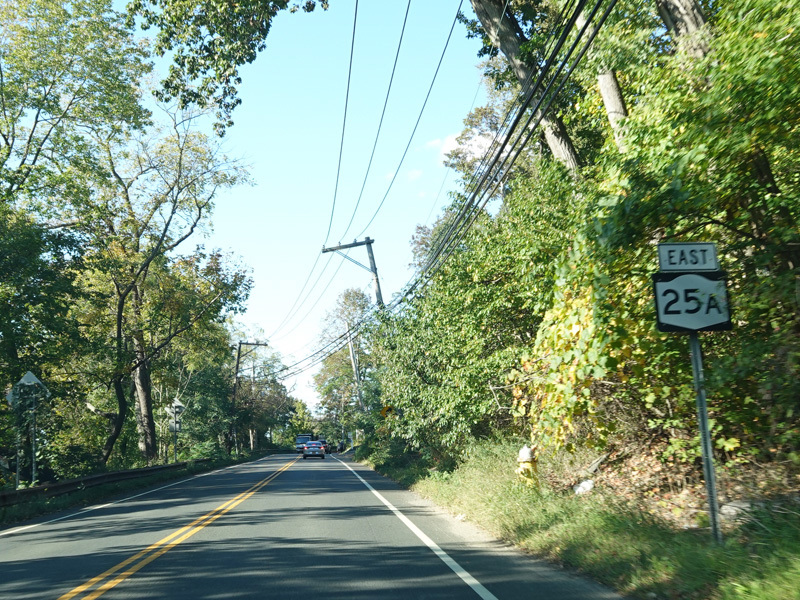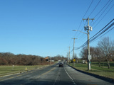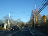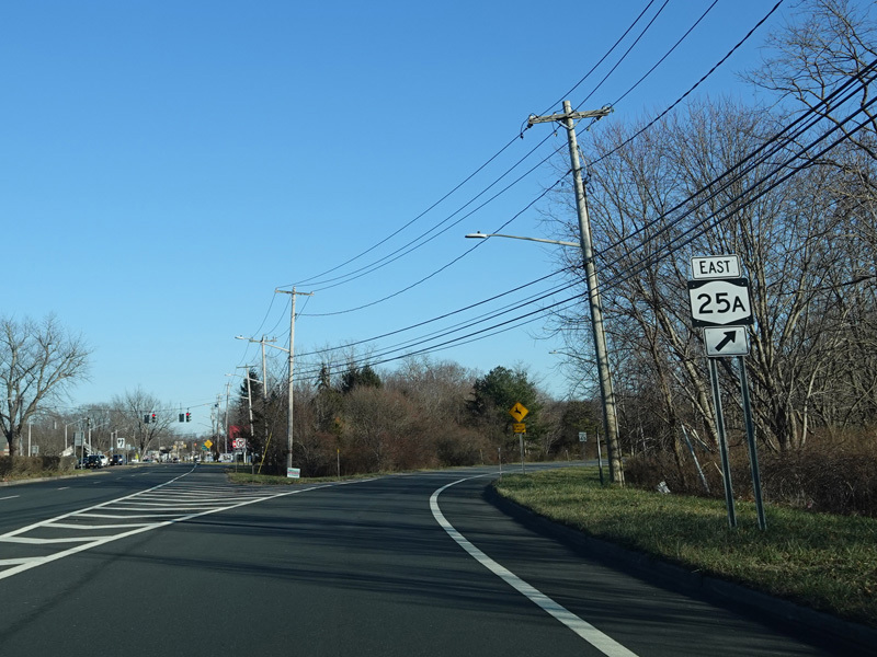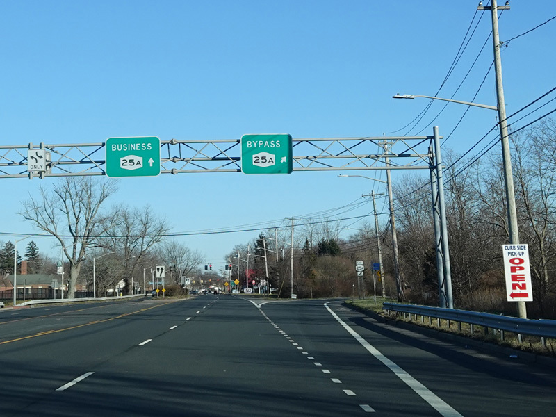 In Rocky Point, NY 25A splits into business and bypass routes. Exit to the right for the bypass route, which is the mainline of NY 25A. Continue straight ahead for the business route.