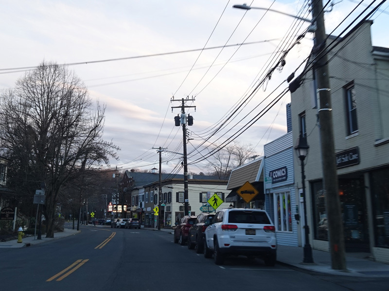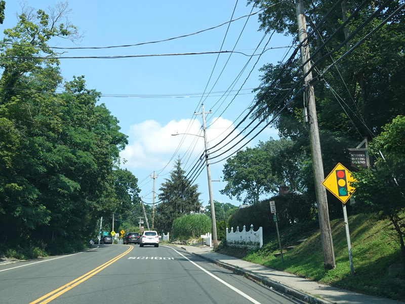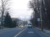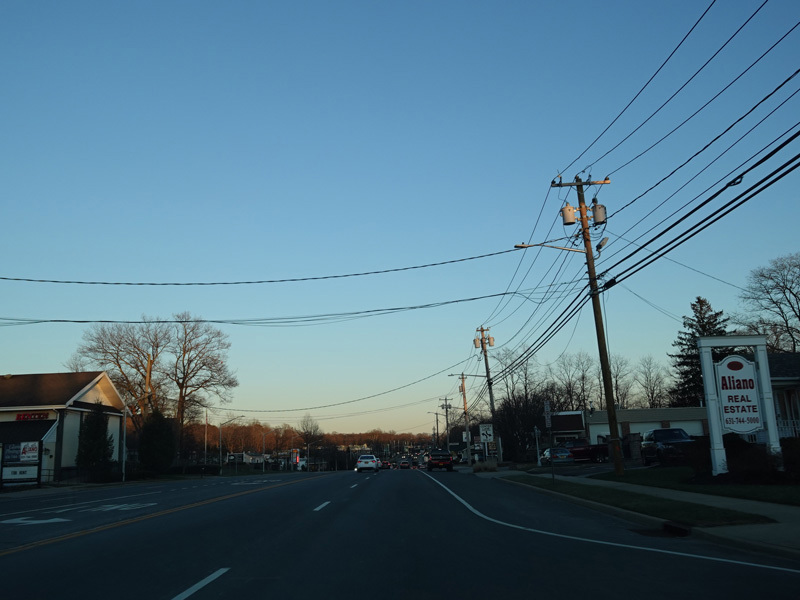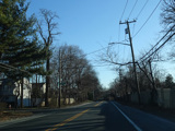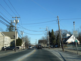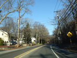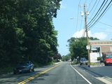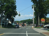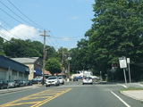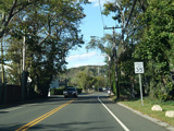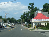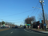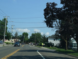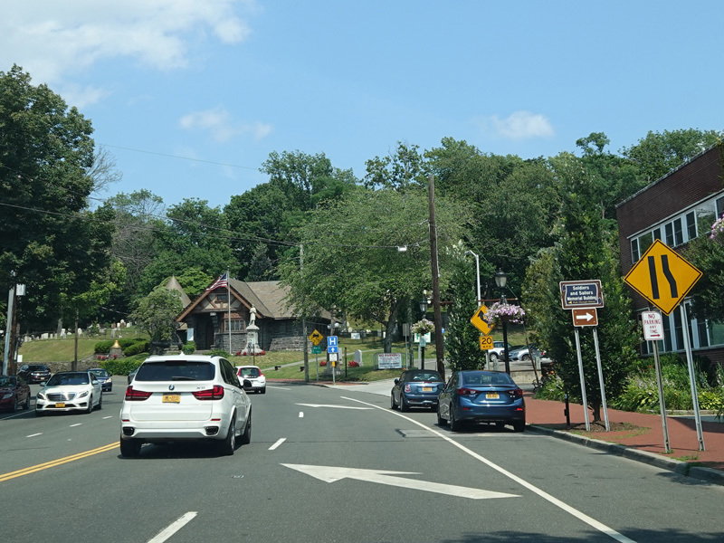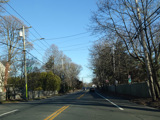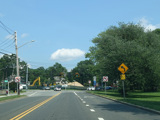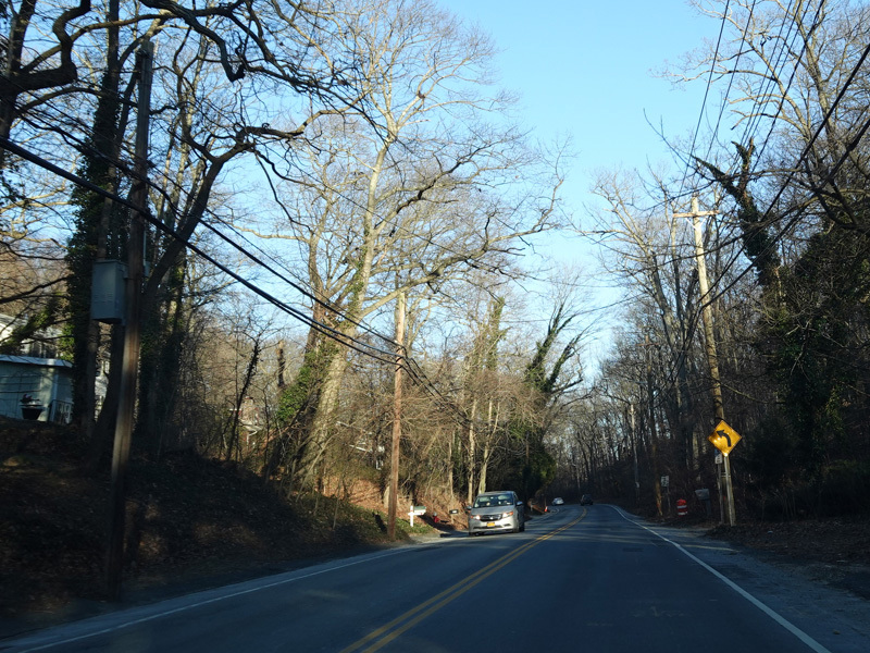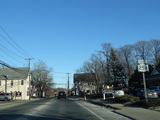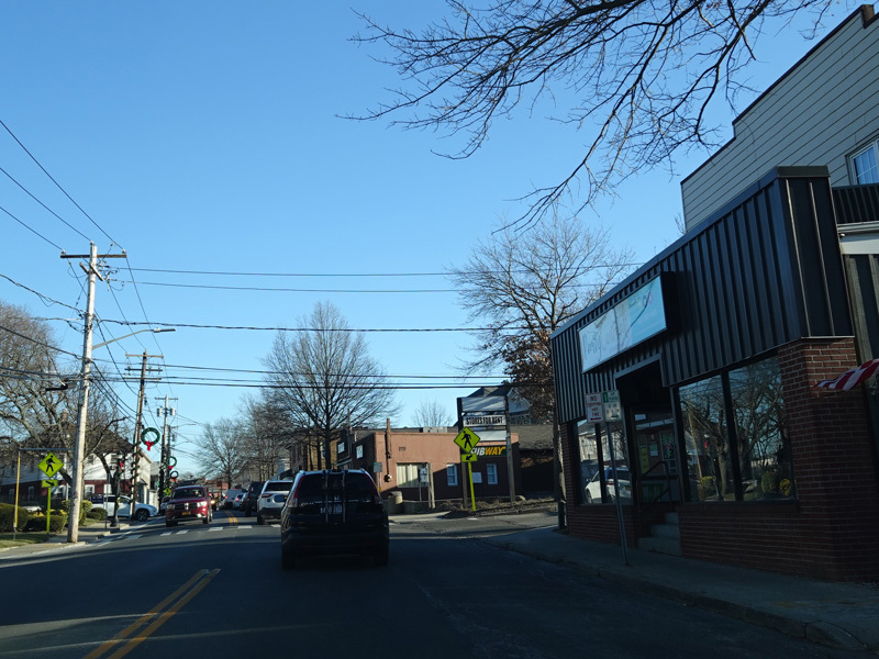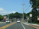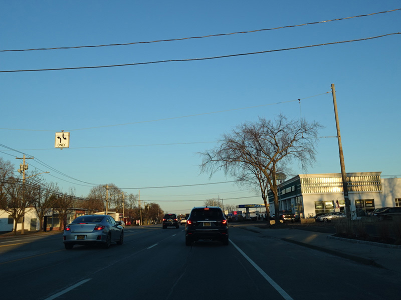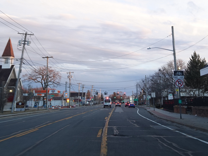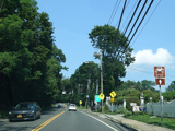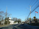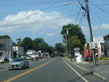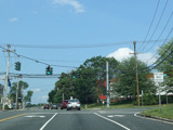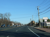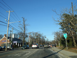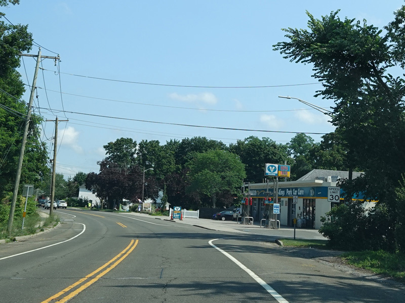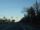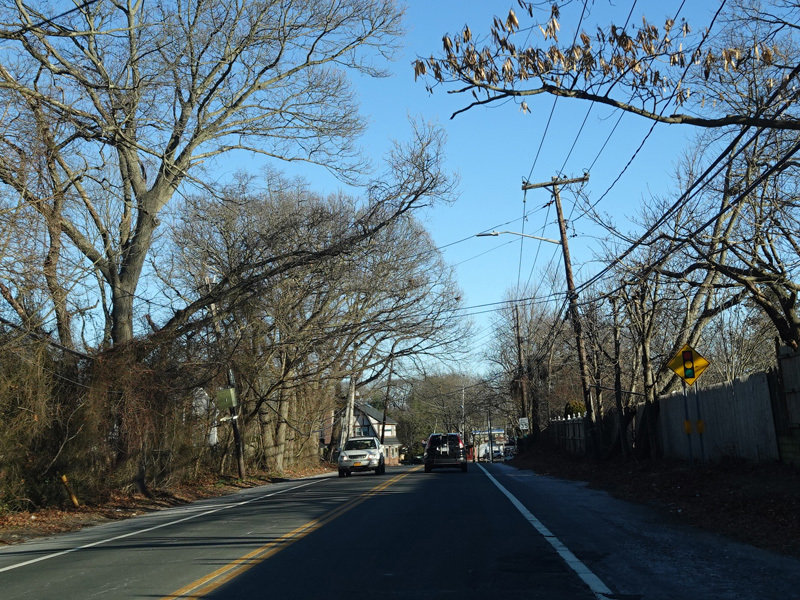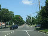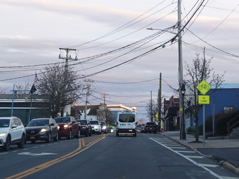 Skipping east to Port Jefferson, West Broadway ends at a flashing red traffic light with a stop sign. Turn right to stay on NY 25A.