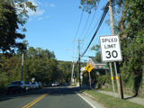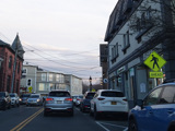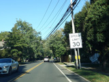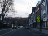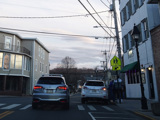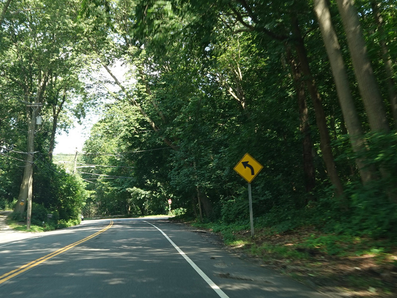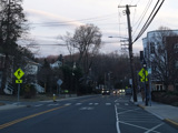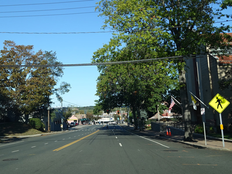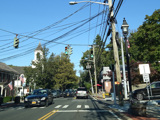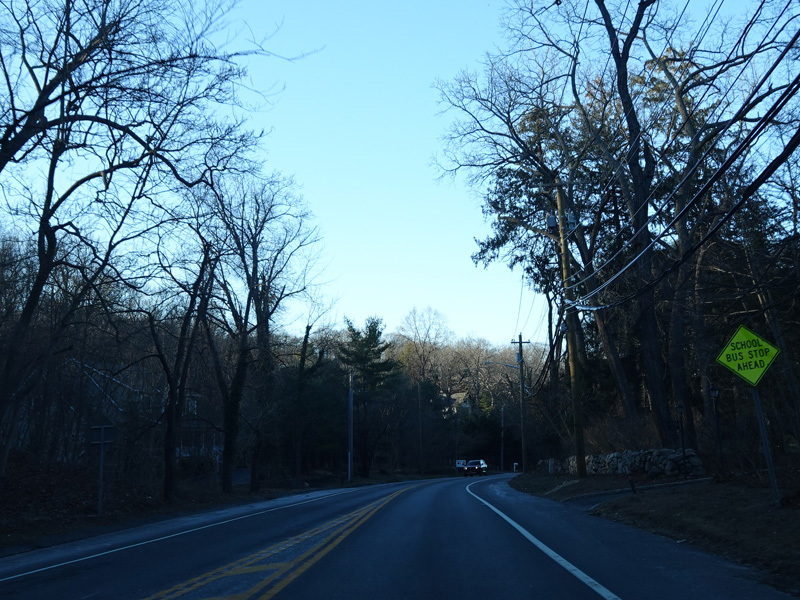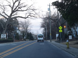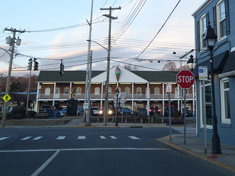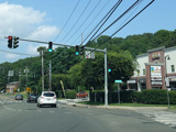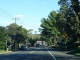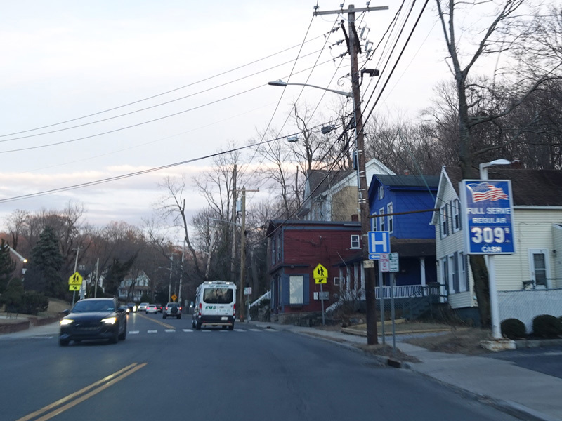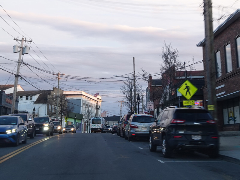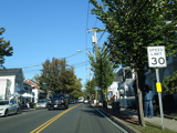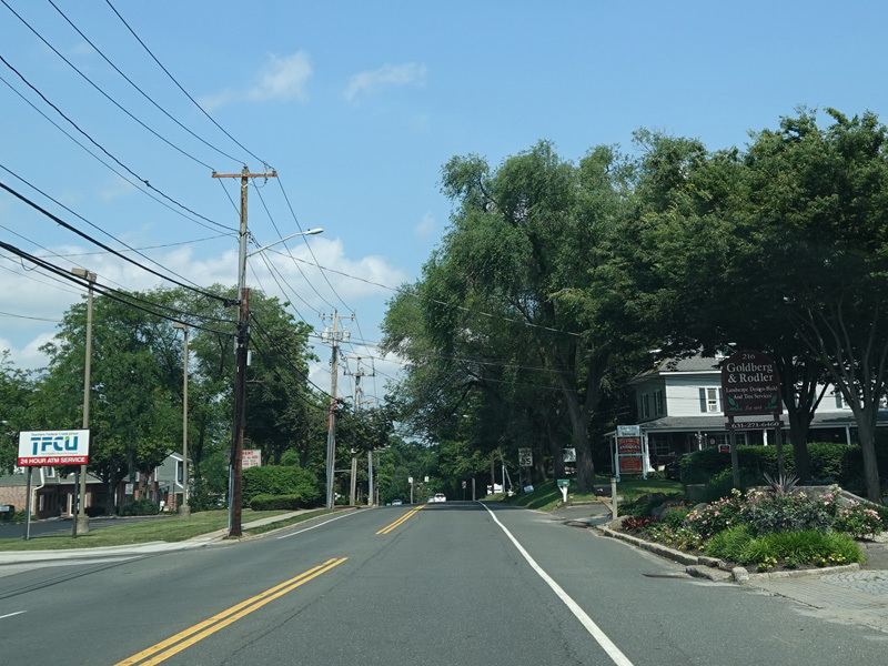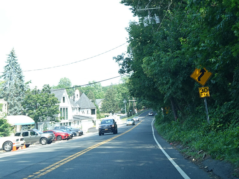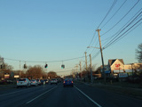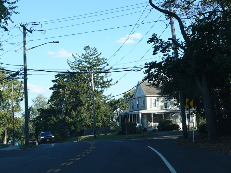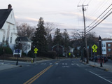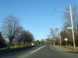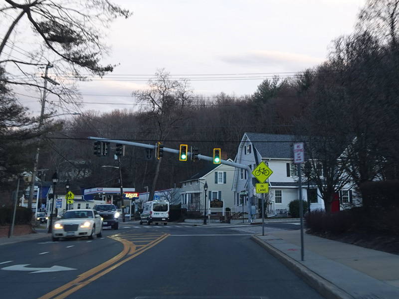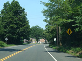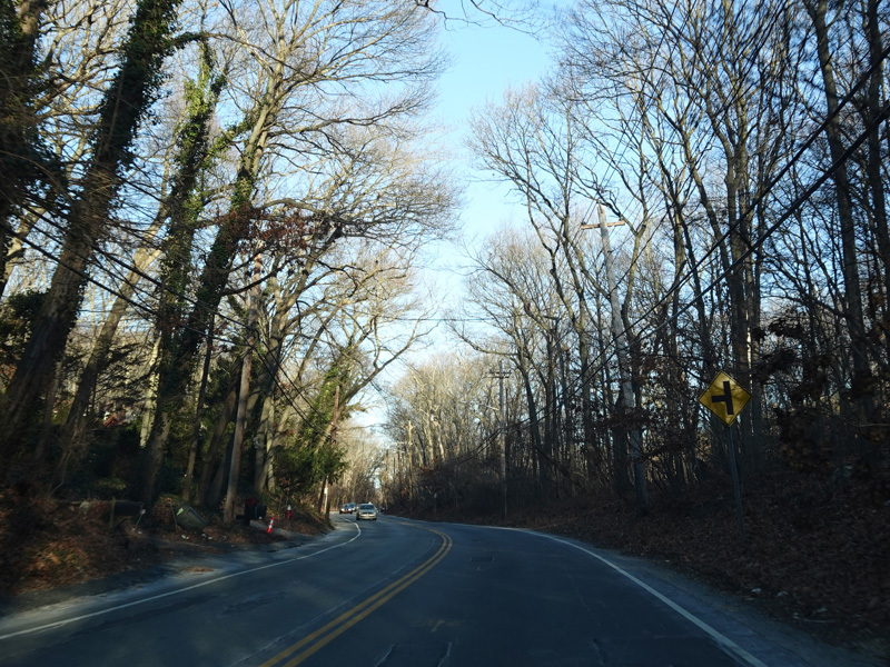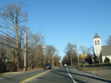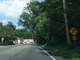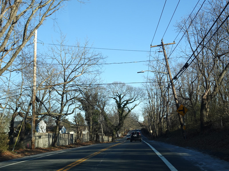 Skipping east to Port Jefferson, West Broadway ends at a flashing red traffic light with a stop sign. Turn right to stay on NY 25A.