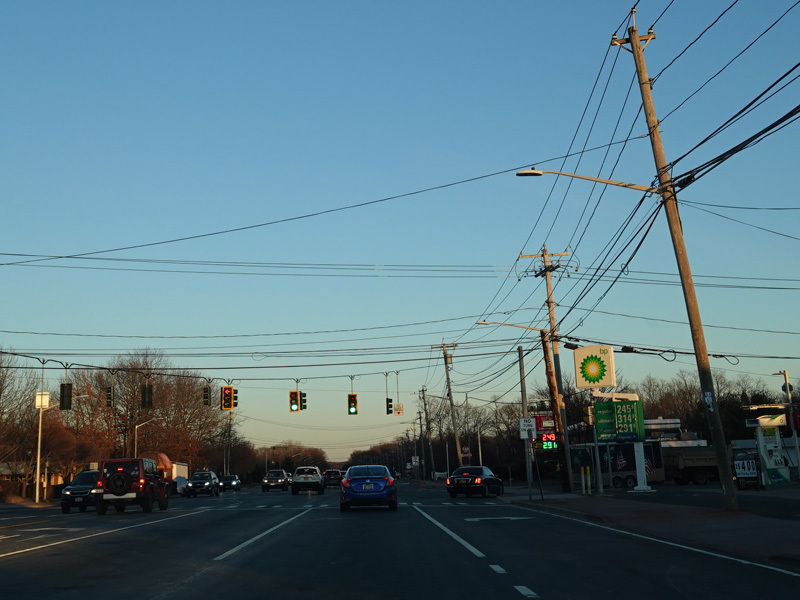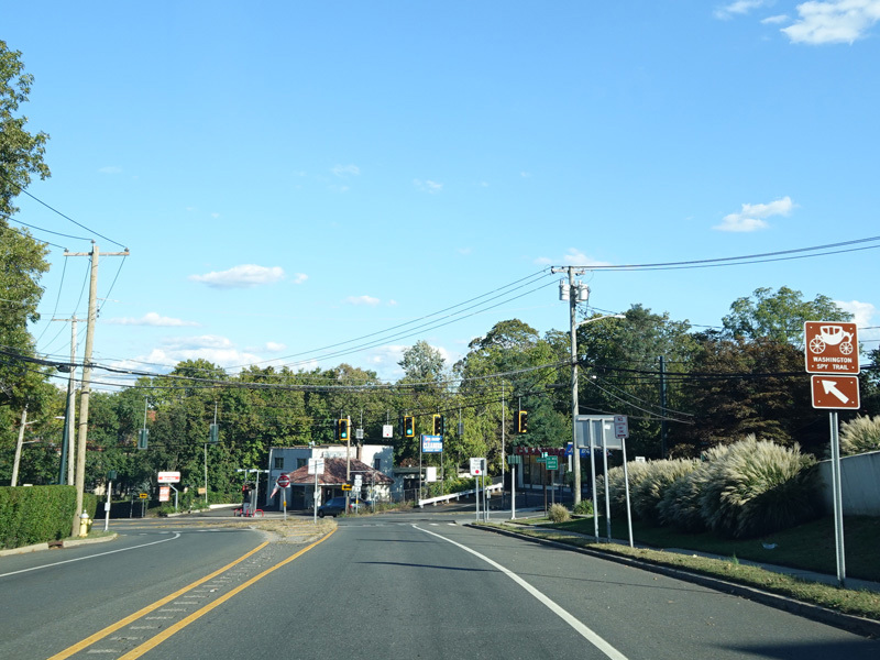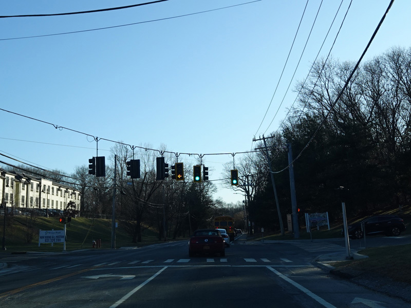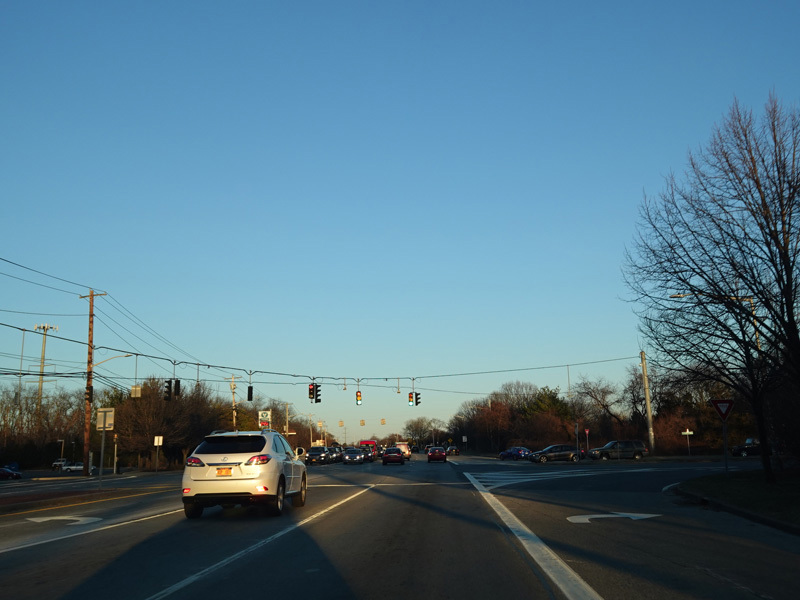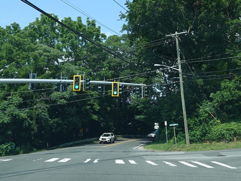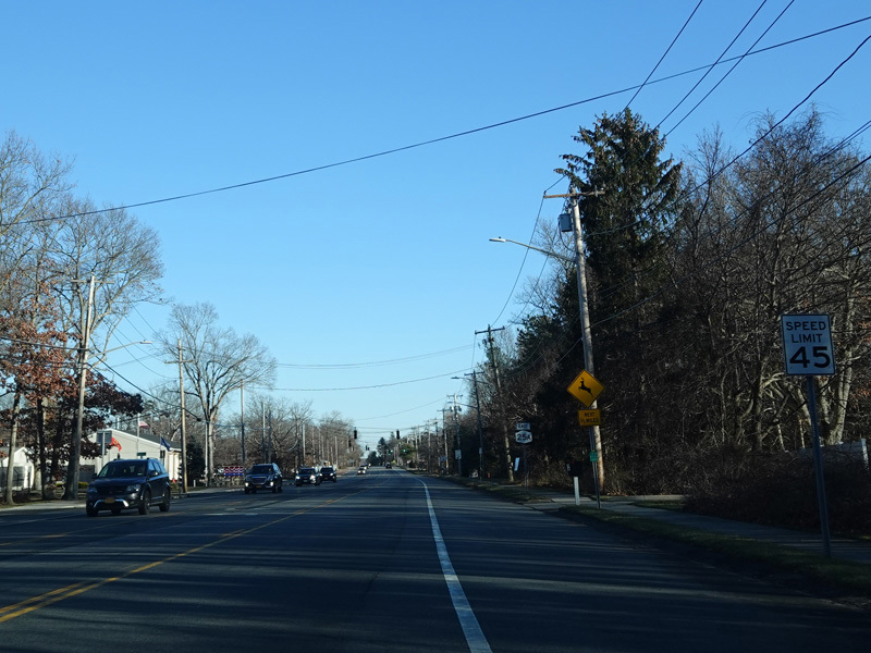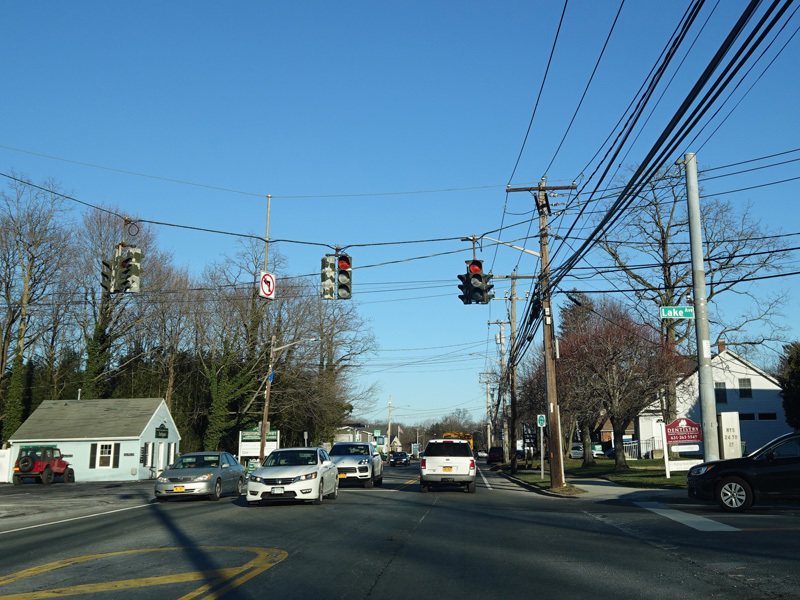 There is a traffic light at New York Avenue (NY 110). Turn left to go north or right to go south.