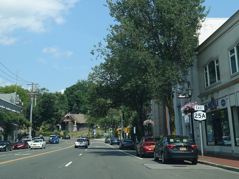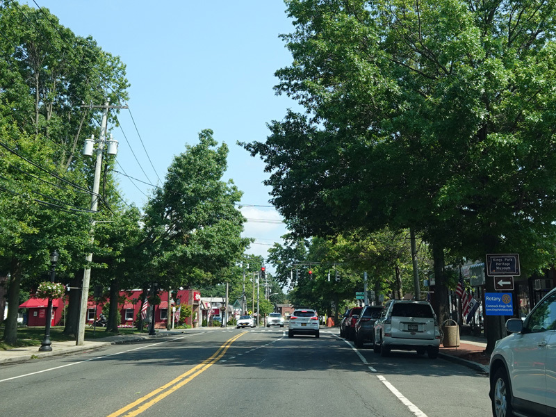 NY 25A is multiplexed with NY 25 along Main Street through Smithtown.