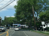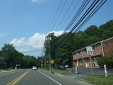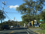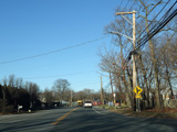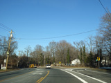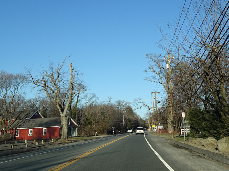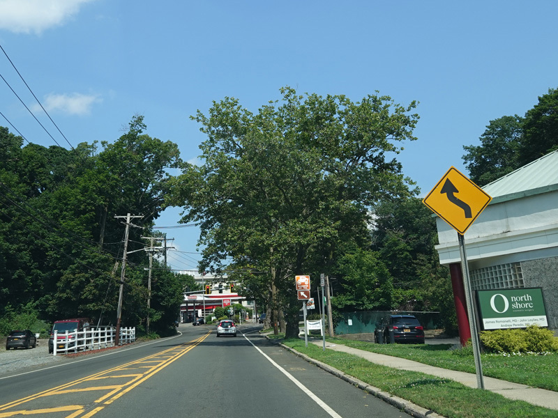 Saint Johnland Road ends here at a traffic light at NY 25. Turn right onto Jericho Turnpike to go west. The two routes merge together straight ahead to become Main Street.