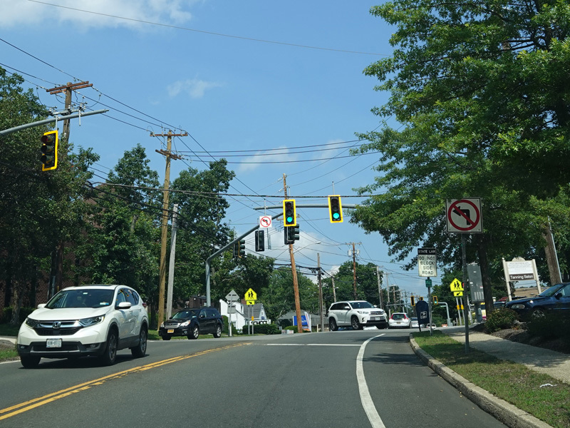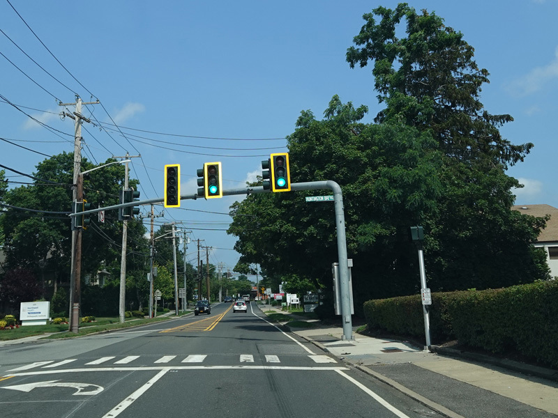 There is a traffic light at Sabbath Day Path, which serves as a shortcut to Park Avenue (CR 35) north, and Jackson Avenue.
