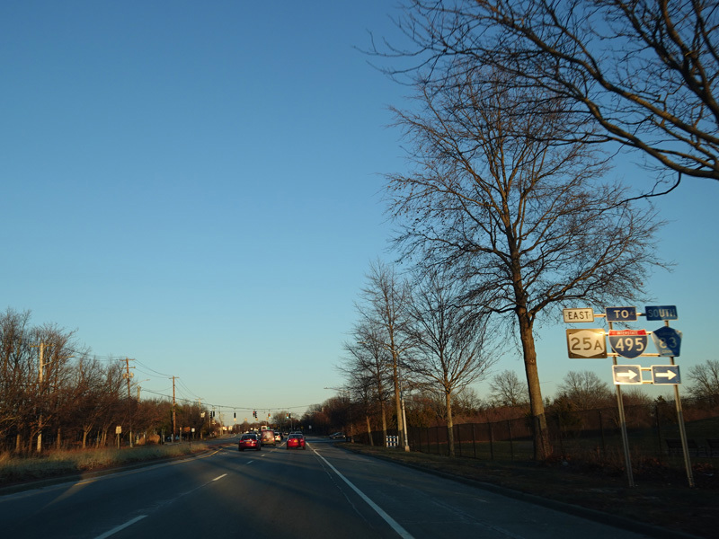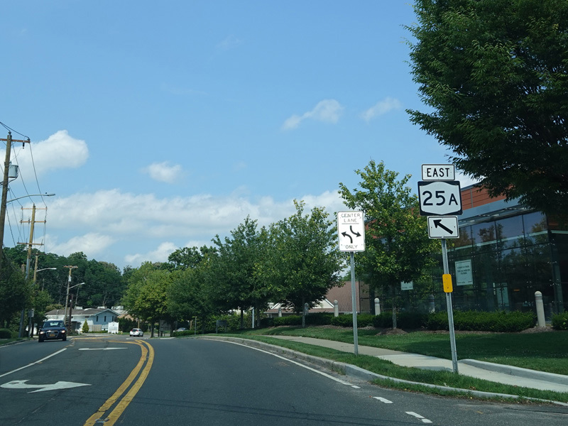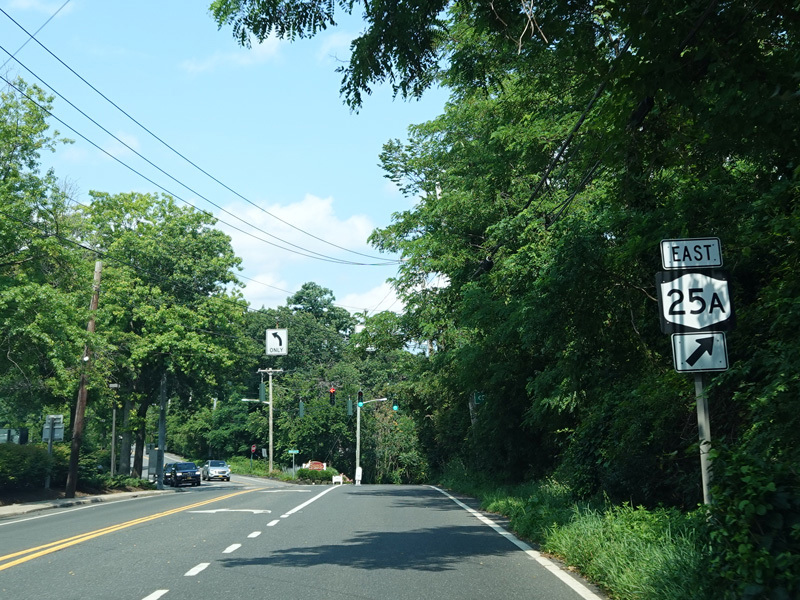 NY 25A splits off from NY 25 at its junction with Hauppauge Road (NY 111) in Smithtown. Here it is known as North Country Road.
