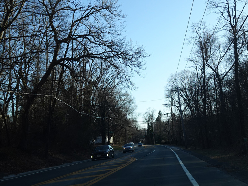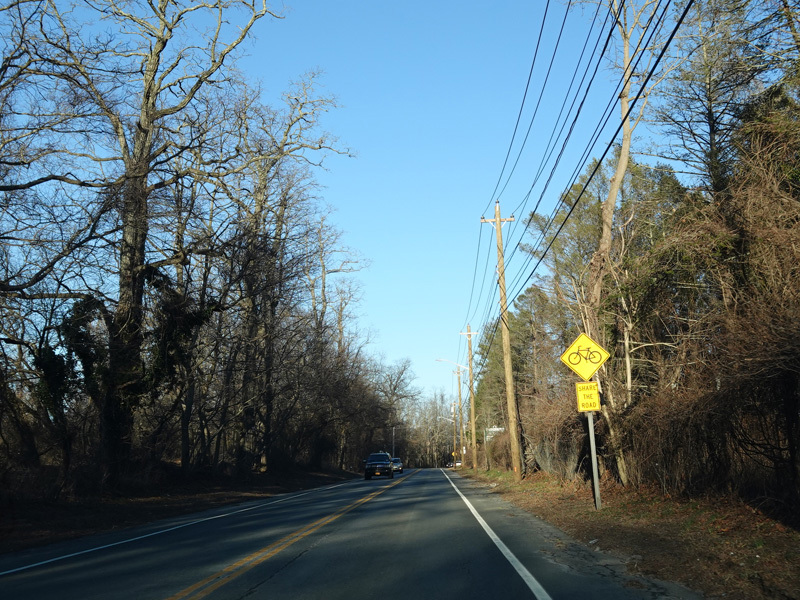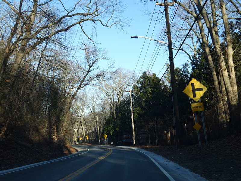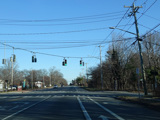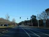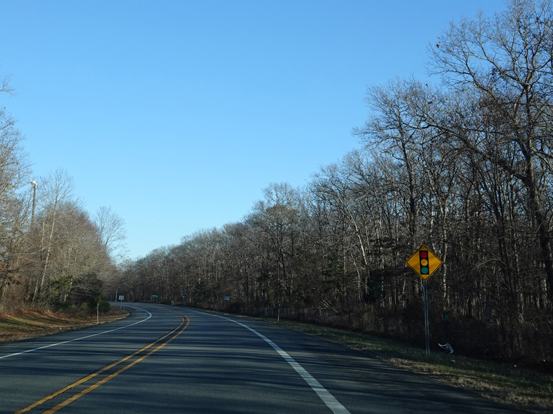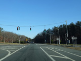 Rocky Point Road (CR 21) begins on the right at a traffic light.