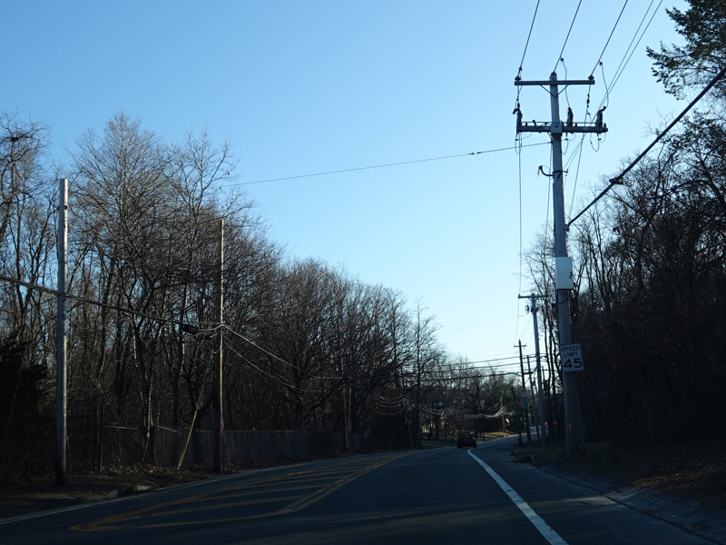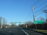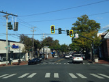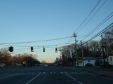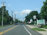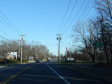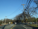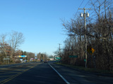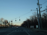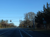Elwood Road (CR 10) begins on the right at a traffic light. Reservoir Avenue is to the left.