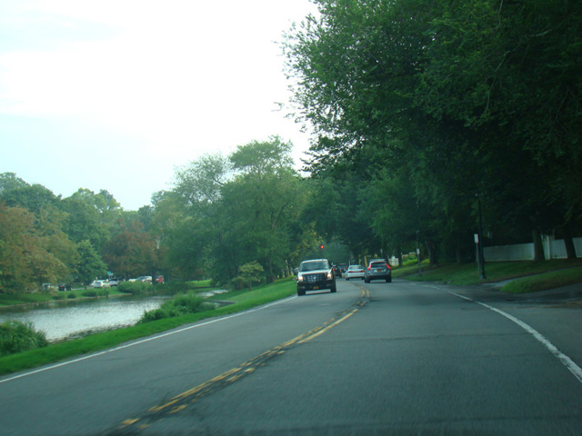 Just west of the Queens-Nassau county line, North Conduit Avenue and South Conduit Avenue leave the Belt Parkway and come together to form Sunrise Highway. Sunrise Highway is a large divided road with traffic lights. It runs along the south shore, parallel to Merrick Road, through all of Nassau and the western part of Suffolk. In West Babylon, Sunrise Highway becomes an expressway. Sunrise Highway the expressway runs along the south shore until the beginning of the South Fork. In Shinnecock Hills, Sunrise Highway ends and NY 27 is multiplexed with North Road (CR 39). NY 27 is multiplexed with North Road (CR 39) and Flying Point Road (CR 39A) through Southampton, until the end of CR 39A at Montauk Highway. Montauk Highway is a two-lane road with traffic lights. NY 27 is routed along Montauk Highway from CR 39A to Montauk Point, the easternmost point on Long Island. It ends at the Montauk Point Lighthouse. Over 120 miles long, NY 27 is the longest route on Long Island.