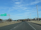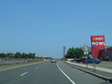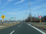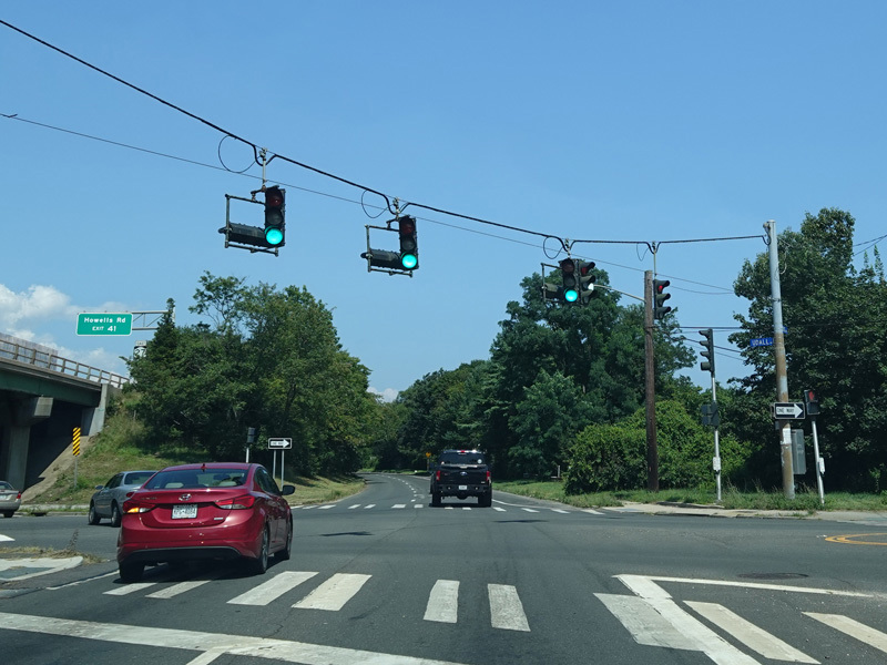 Howells Road (CR 57) merges in from the left. The roadway then splits. Bear left to go north on Howells Road (CR 57) or right to go south. Continue straight ahead at the traffic light to stay on the service road.
