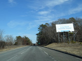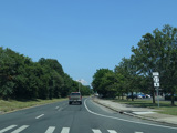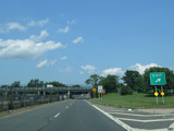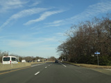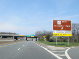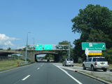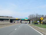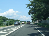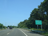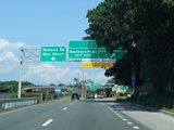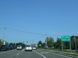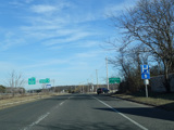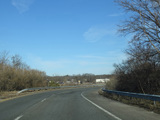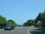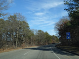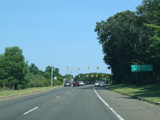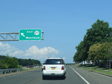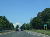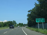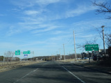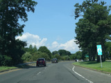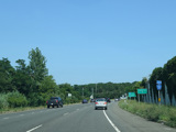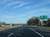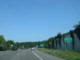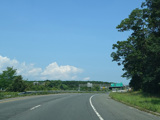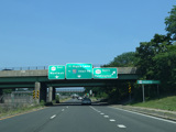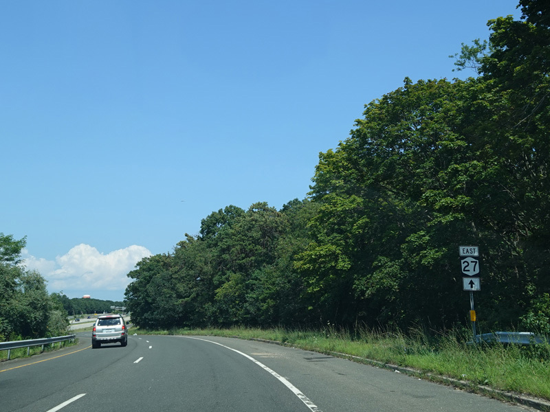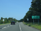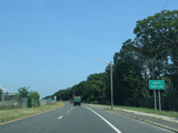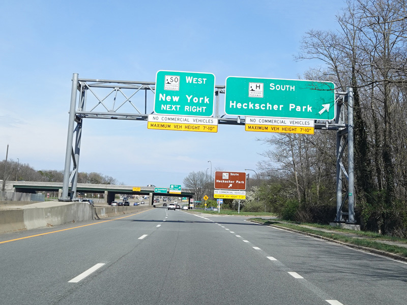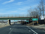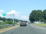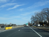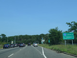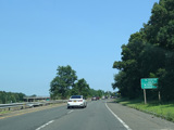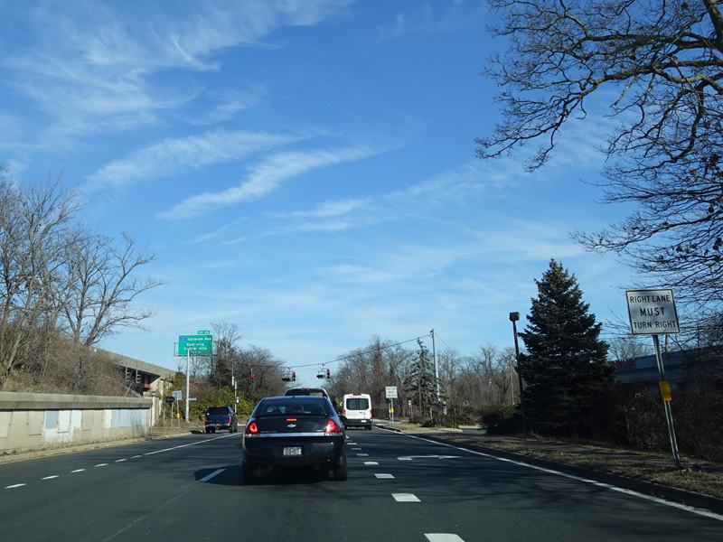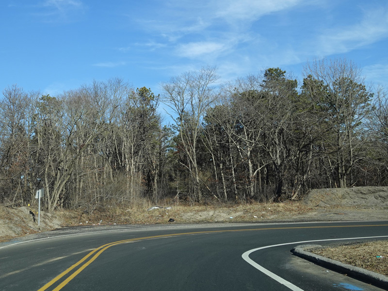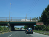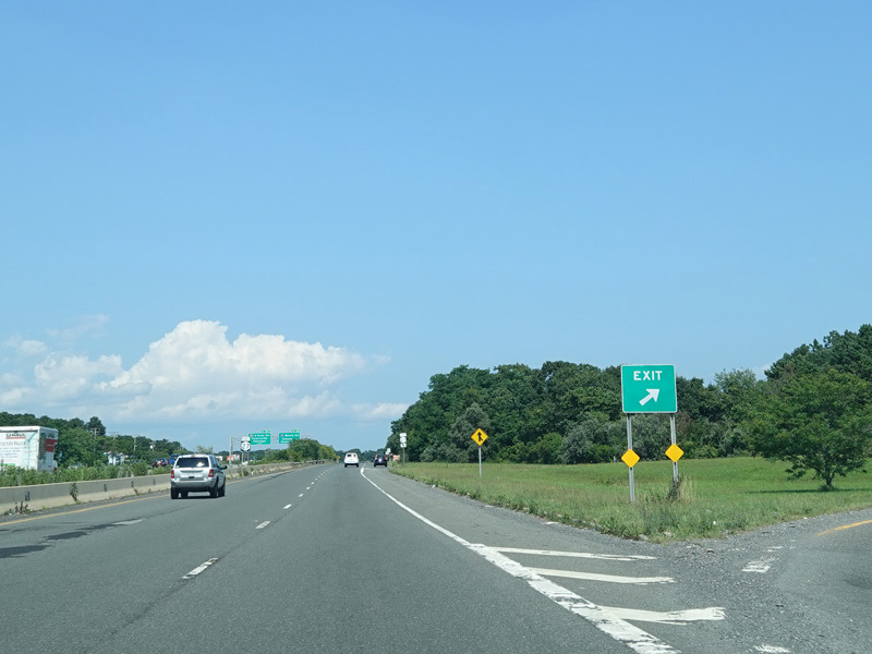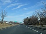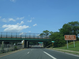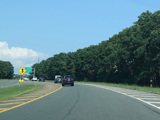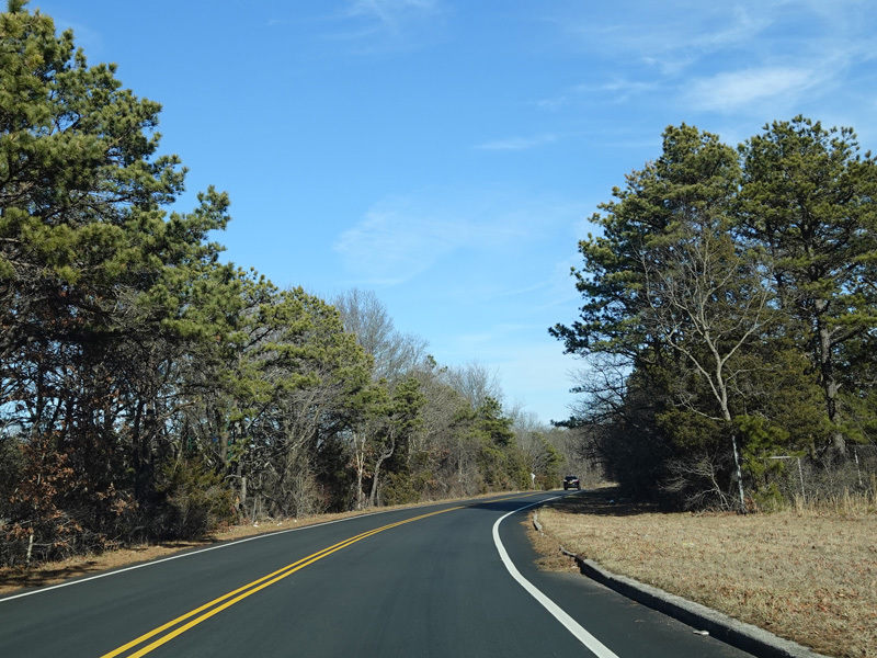 There is a service road gap as Sunrise Highway passes through Connetquot State Park. Bear left to get on the highway or right for access to Wheeler Road.