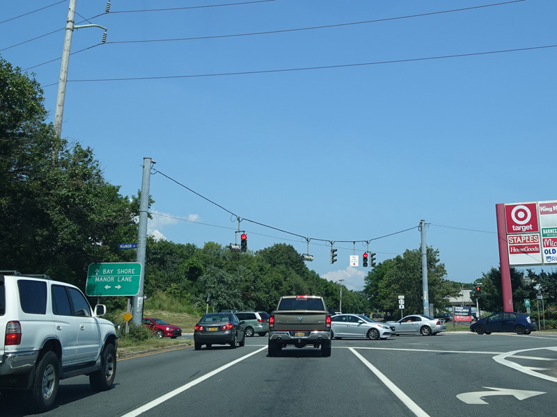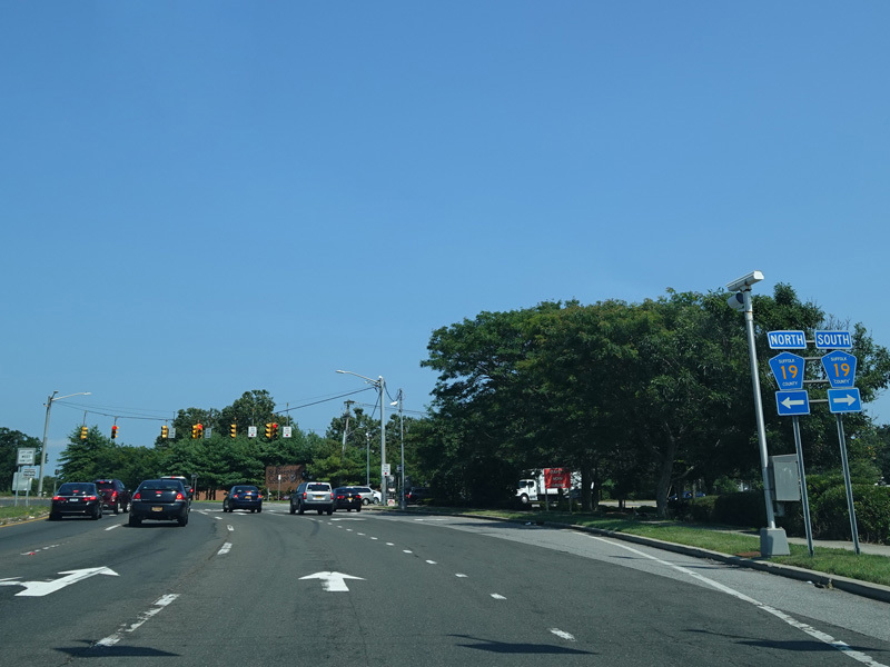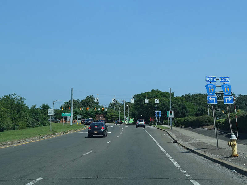There is a traffic light at Waverly Avenue (CR 19). Turn left to go north or right to go south.
