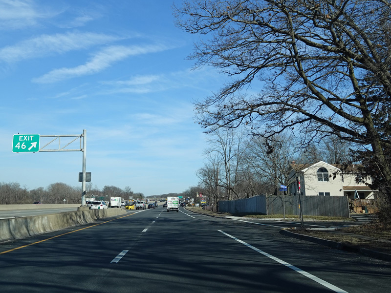 The ramp from exit 46 merges in on the left. Immediately thereafter, there is an entrance to Sunrise Highway.