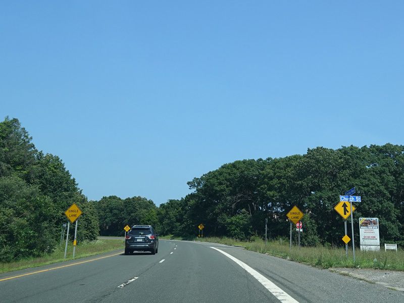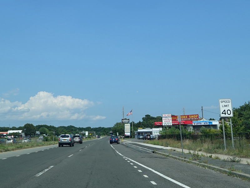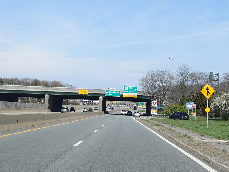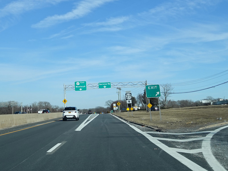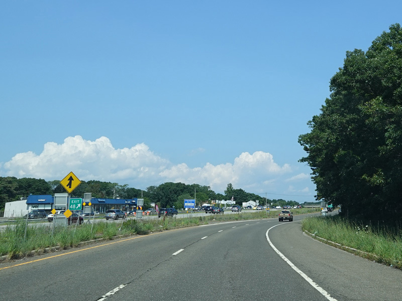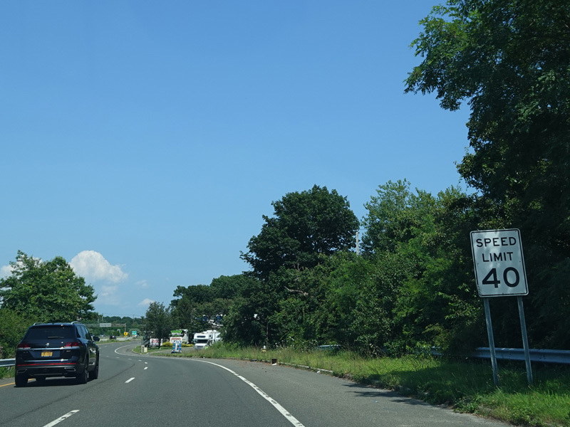 Welcome to North Babylon! The service road narrows down to a single lane, and a second lane merges in on the left from exit 40.