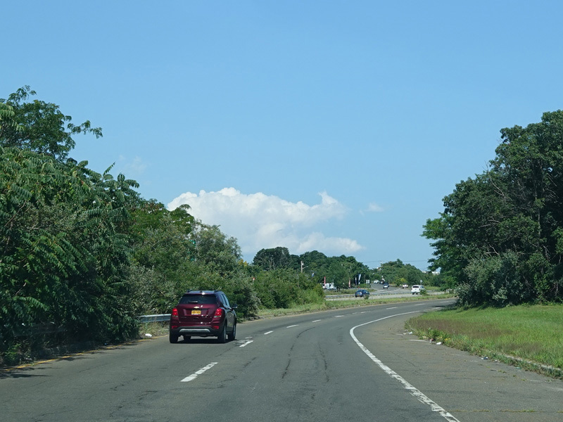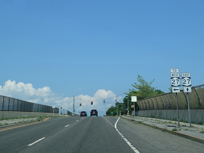 There is an entrance to Sunrise Highway on the left. This entrance has no signage.