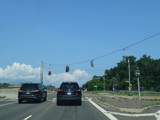 There is a traffic light at Hospital Road. Turn left to go north or right to go south.