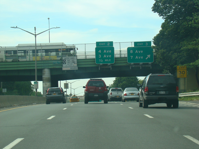 Exit 2 is for 4 Avenue and 3 Avenue. Exit here for access to the Brooklyn-Queens Expressway (I-278) west.