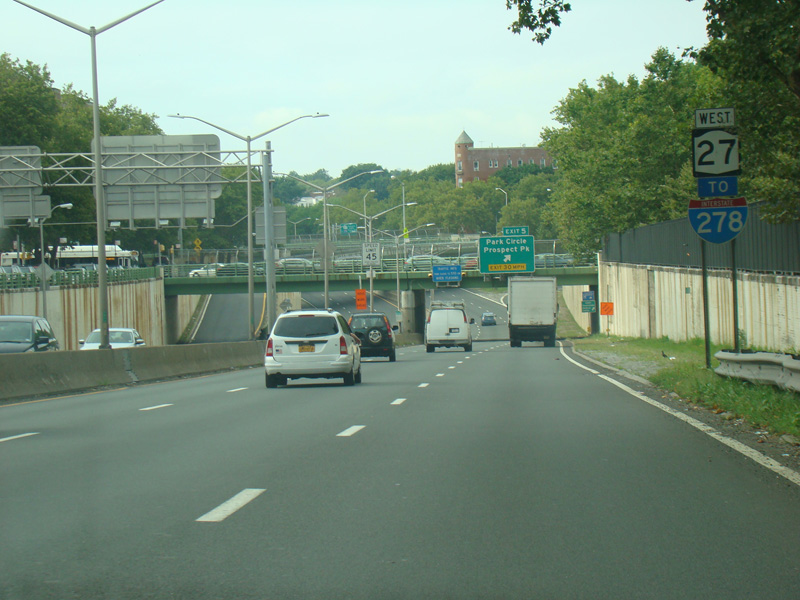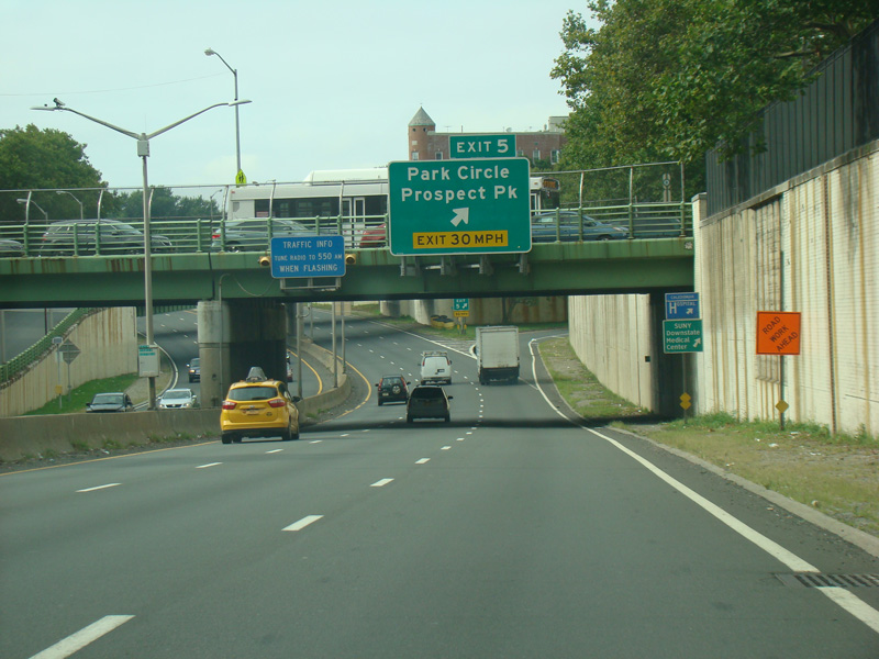 Skipping west to Brooklyn, the Prospect Expressway begins at Church Avenue and Ocean Parkway. Exit 5 is for Park Circle and Prospect Park.