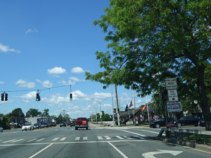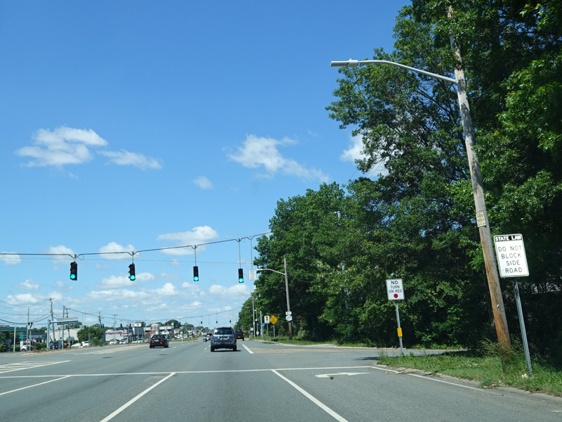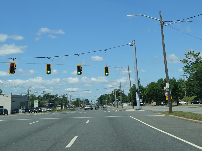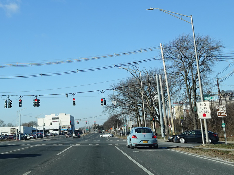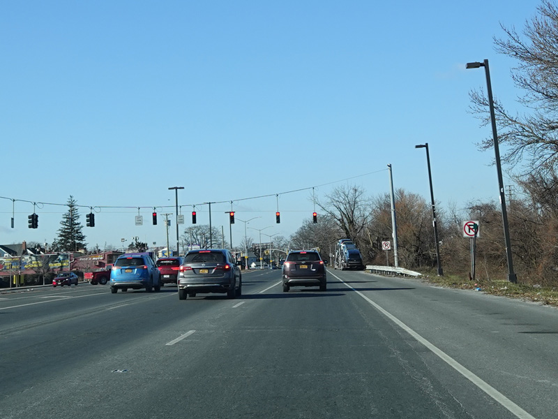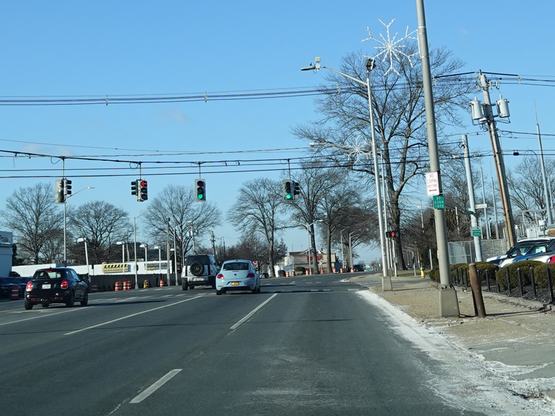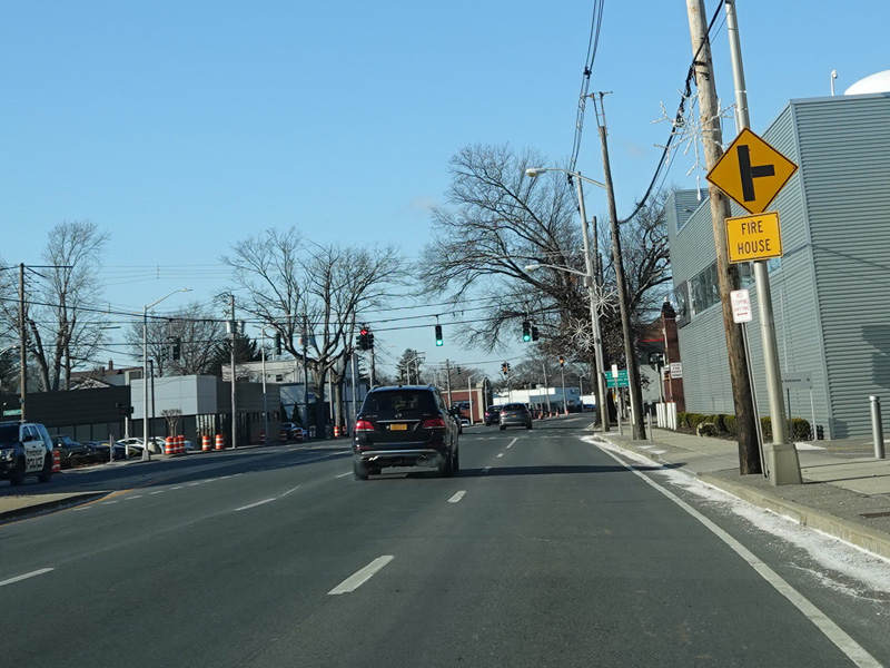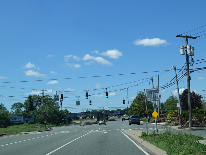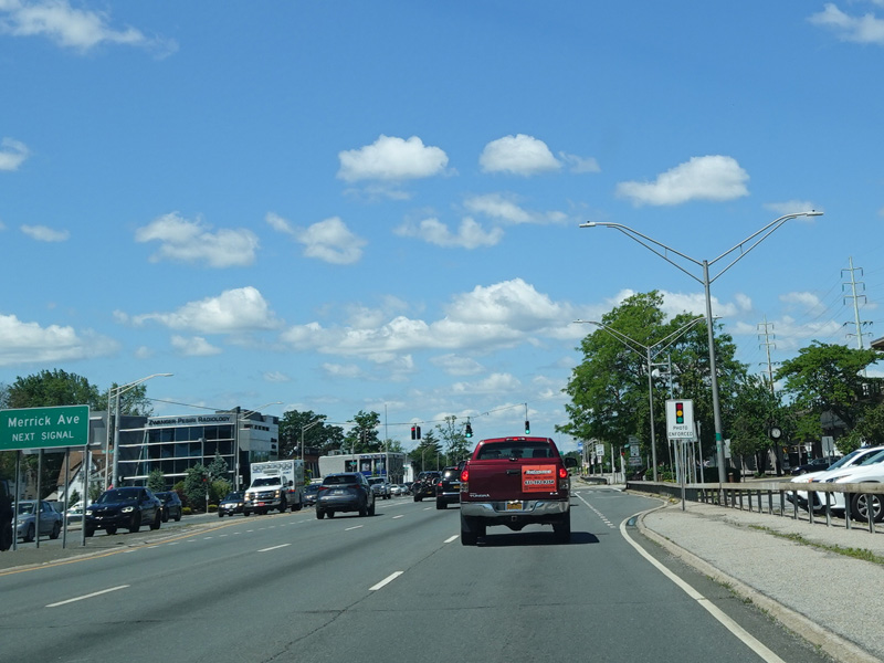 There is a traffic light at Merrick Avenue (CR 4). Turn right to go north or left to go south.