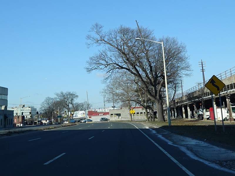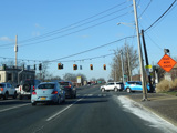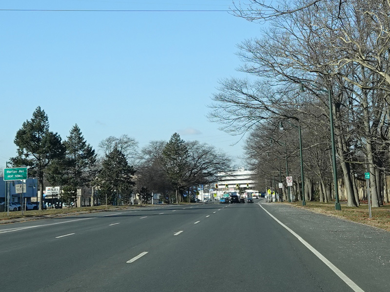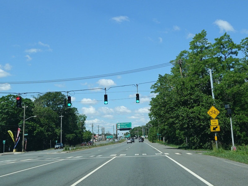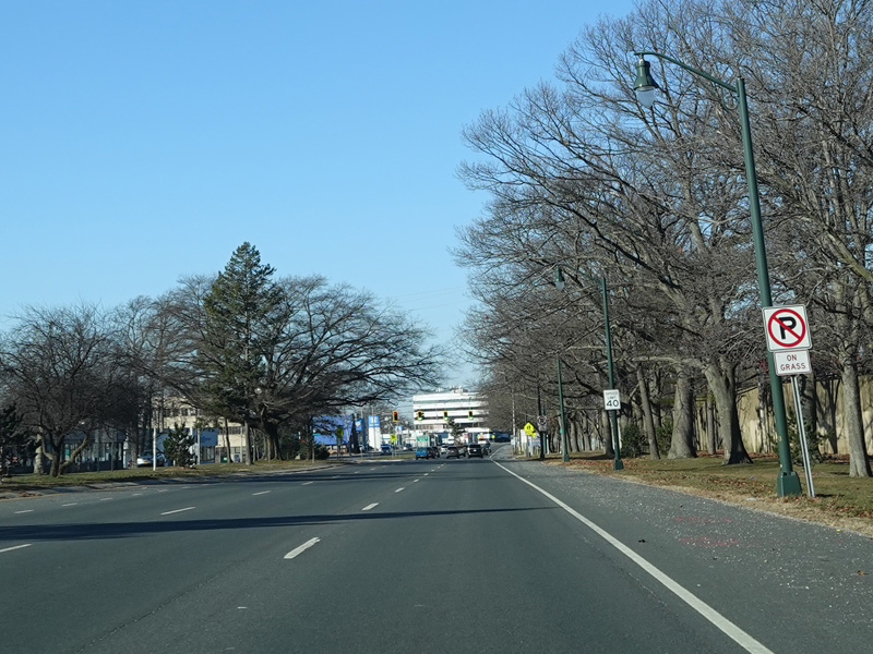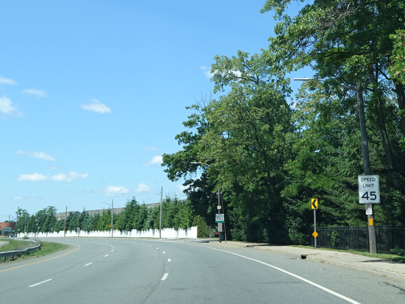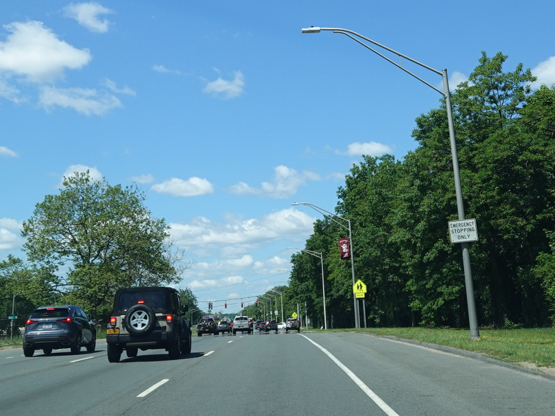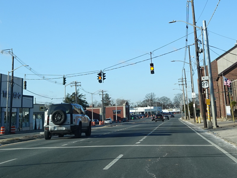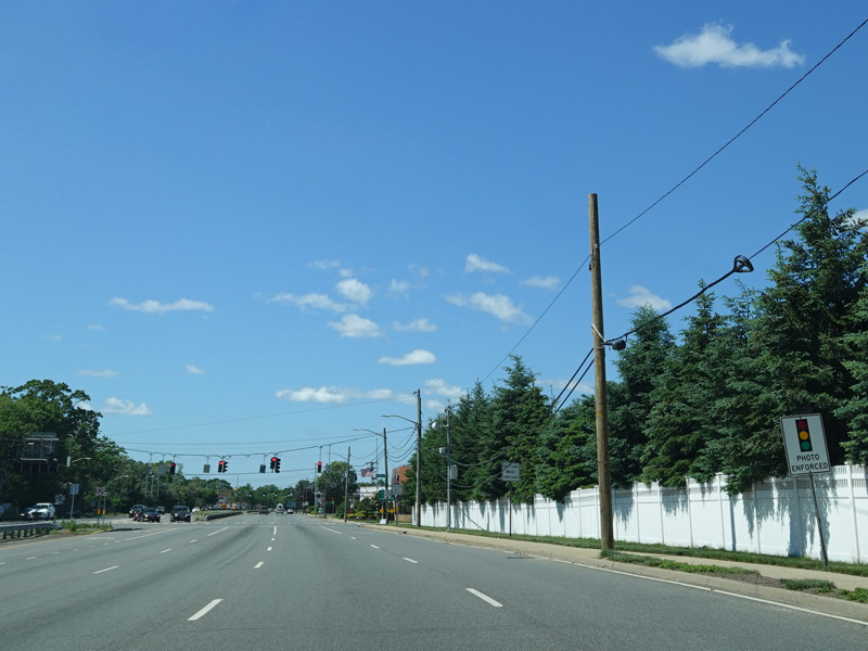 There is a traffic light at Merrick Avenue (CR 4). Turn right to go north or left to go south.