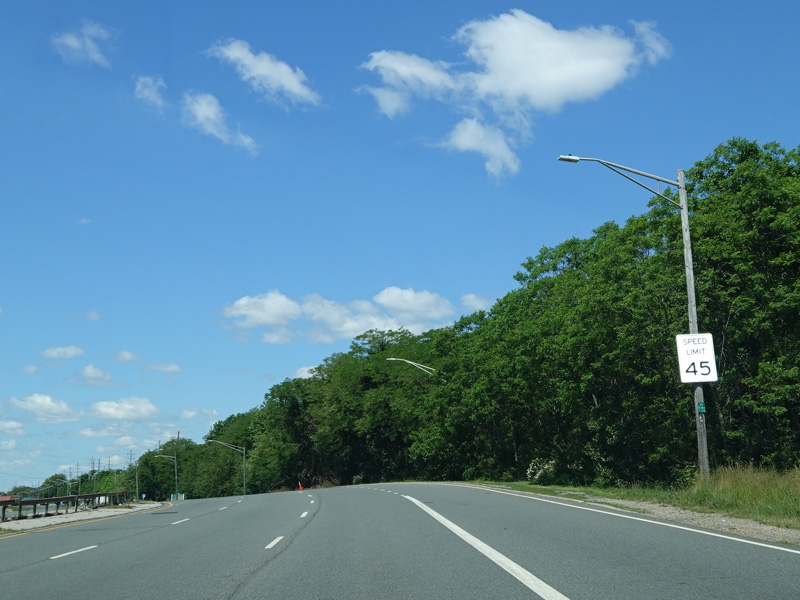 Seamans Neck Road begins on the right at a traffic light. Immediately thereafter, there is an entrance to the Seaford-Oyster Bay Expressway (NY 135) north. There is no southbound entrance because the expressway ends just south of here at Merrick Road (CR 27).