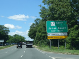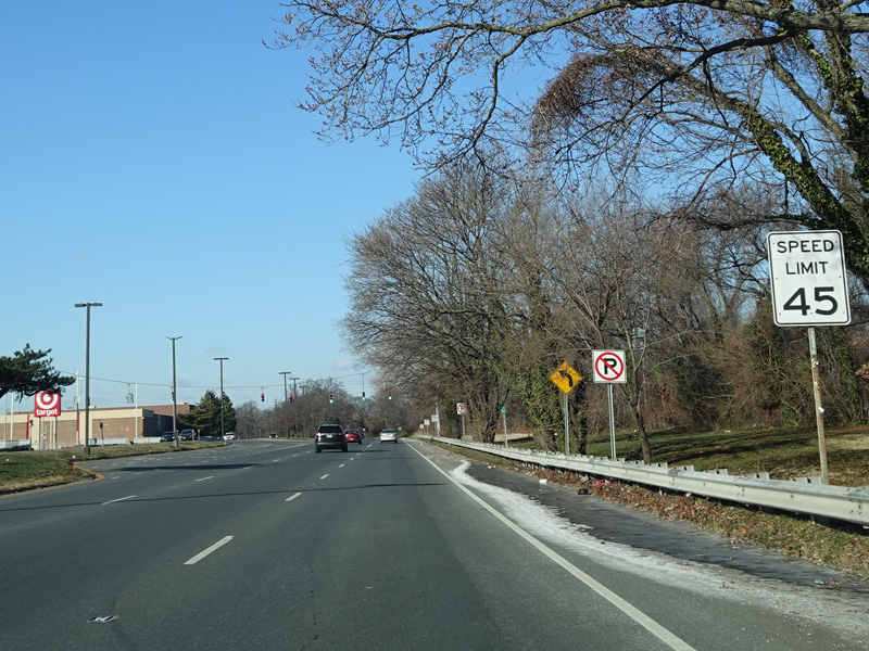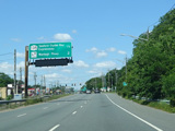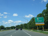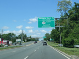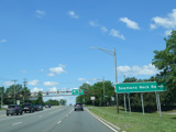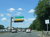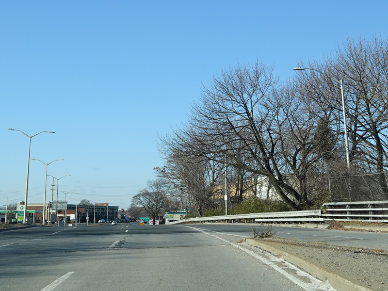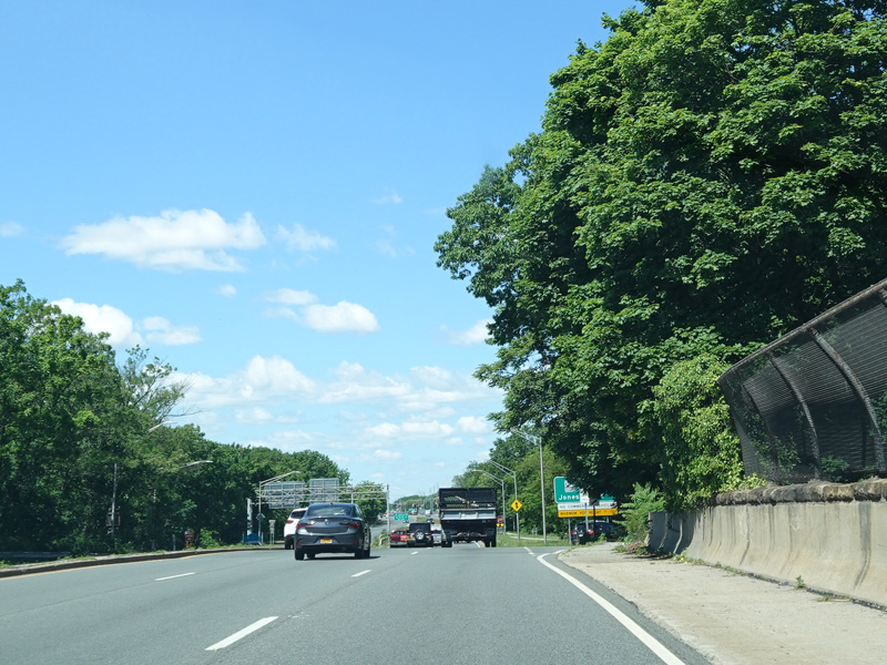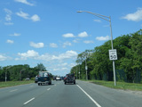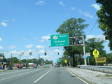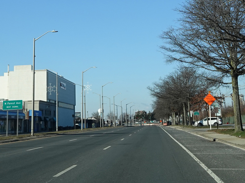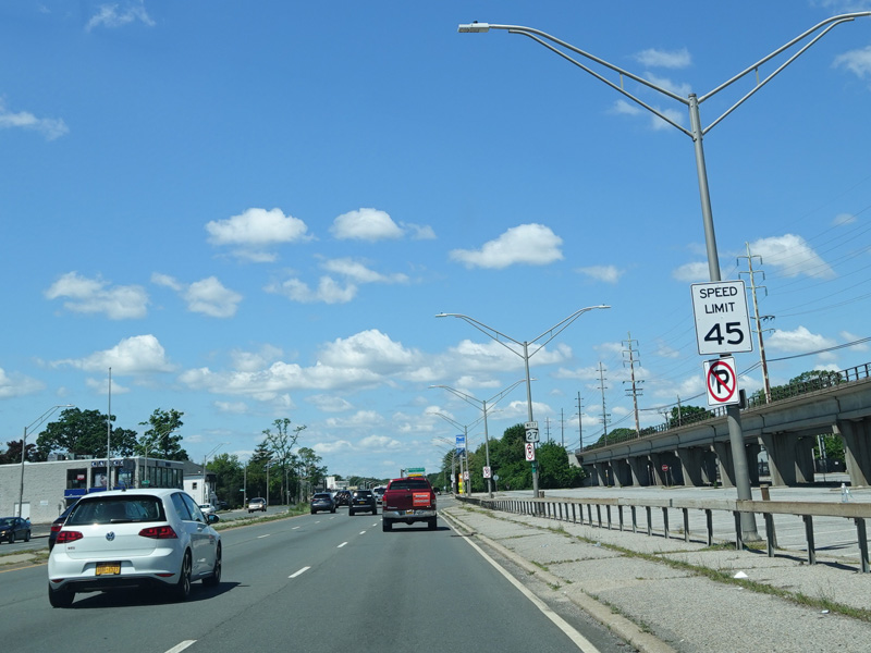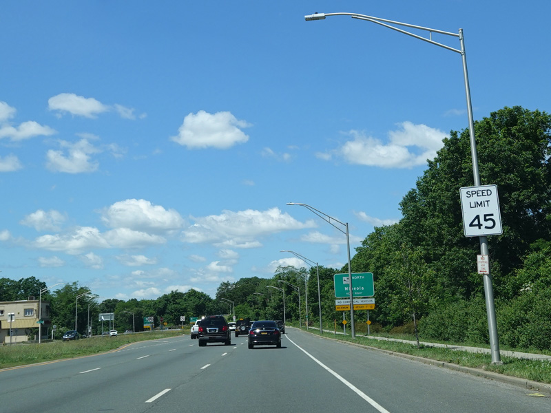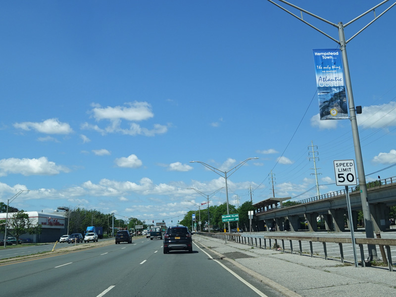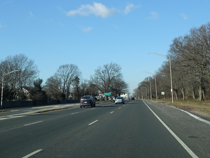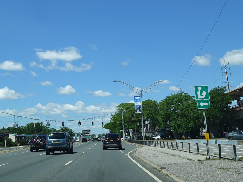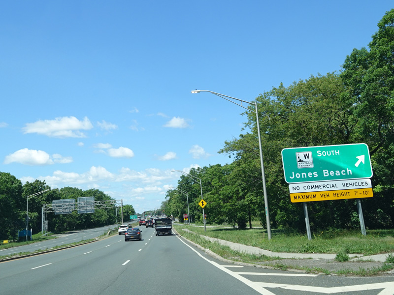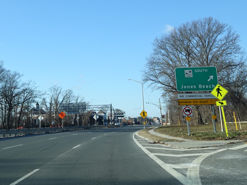 Welcome to Seaford! There is advance signage for the upcoming interchanges with the Seaford-Oyster Bay Expressway (NY 135) and the Wantagh Parkway, followed by traffic lights at Washington Avenue and Jackson Avenue.