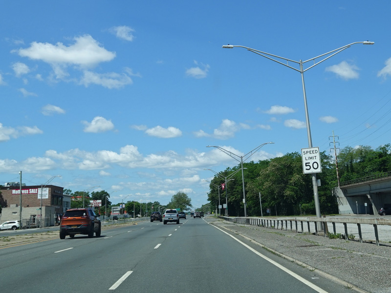 Sunrise Highway continues west through Valley Stream. The Green Acres Mall is on the left along this stretch.