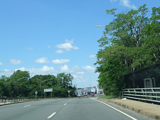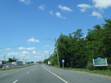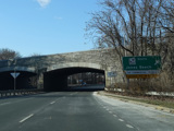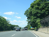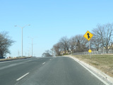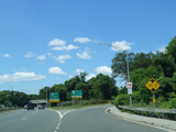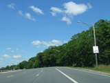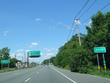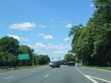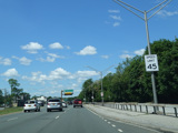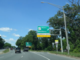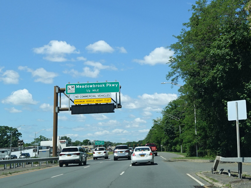 There is advance signage for the upcoming interchange with the Meadowbrook Parkway, followed by a traffic light at Babylon Turnpike.