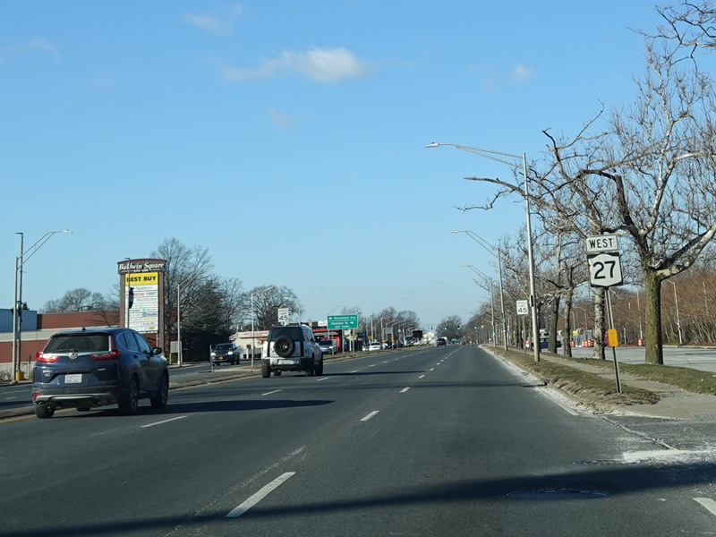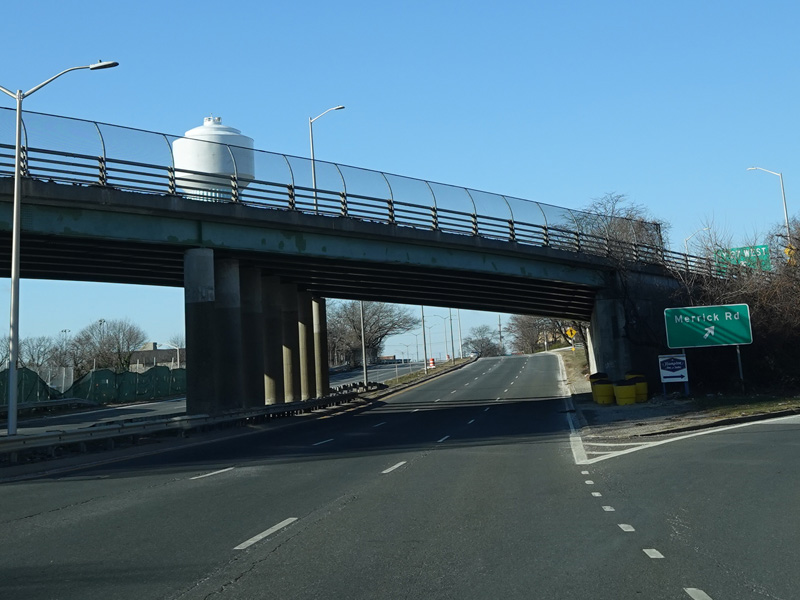 There is a grade-separated interchange with Merrick Road (CR 27). Other than exits from expressways and parkways, this is the only grade-separated interchange involving a county route in Nassau County.