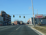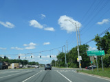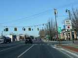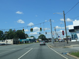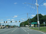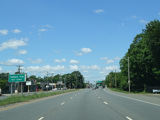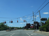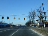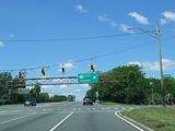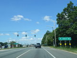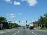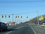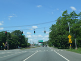 There is a traffic light at CR 7B. Turn right onto North Main Street to go north or left onto South Main Street to go south. It is immediately followed by a traffic light at Church Street. There is no advance signage before either intersection.
