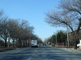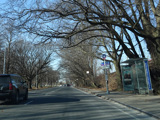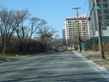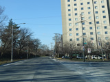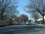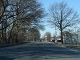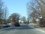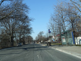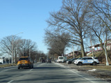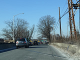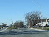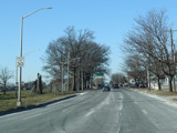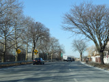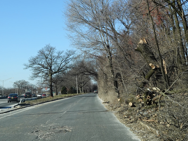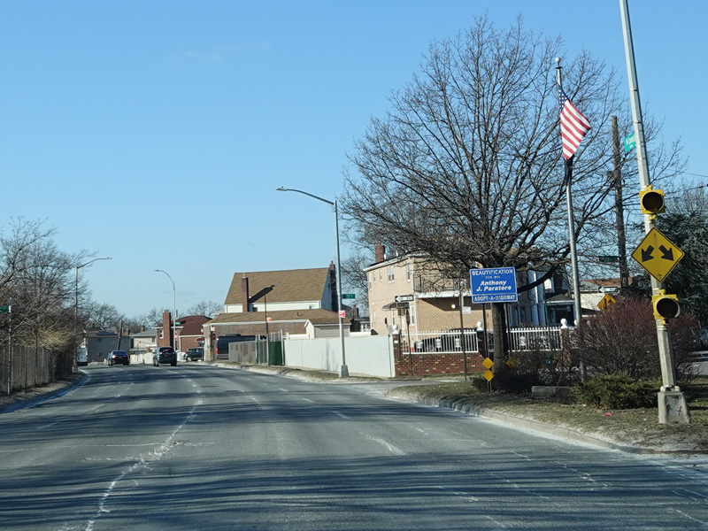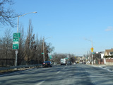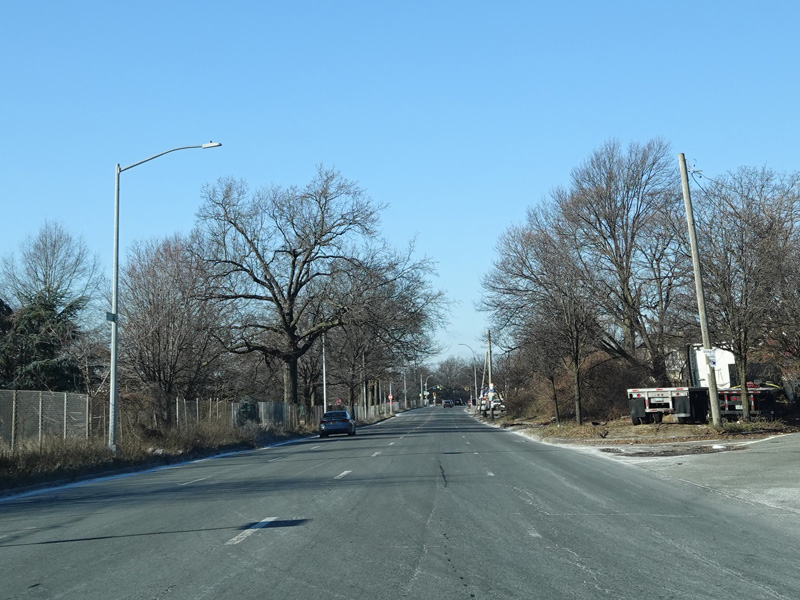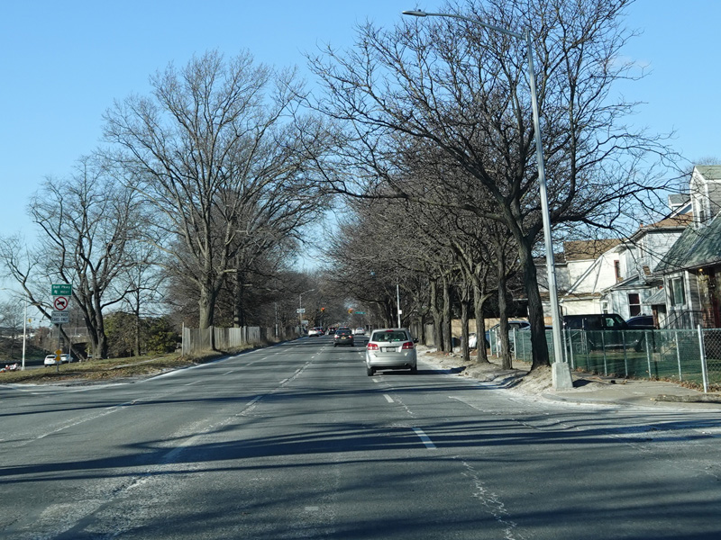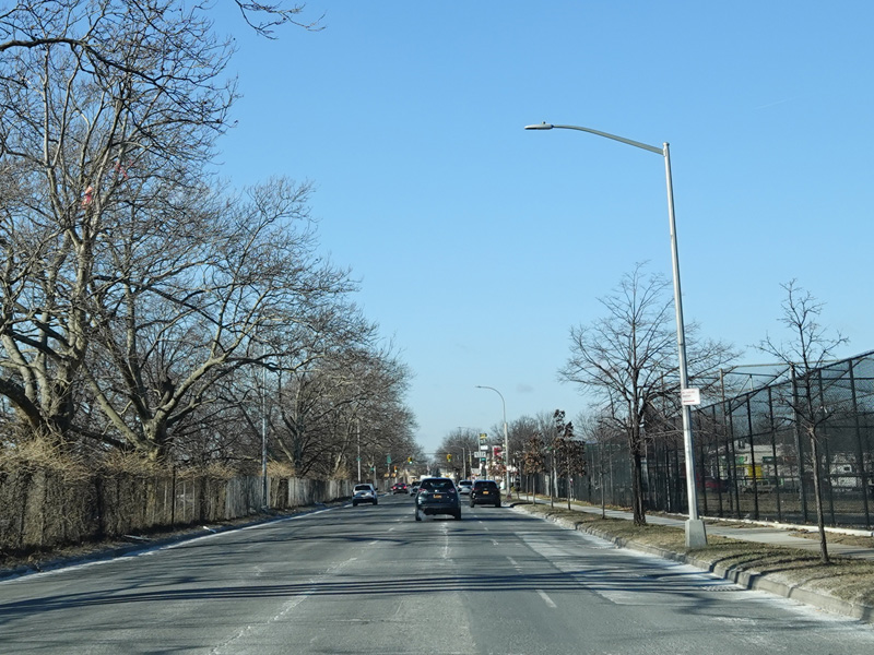 North Conduit Avenue pulls away from the Belt Parkway. In this area, North Conduit Avenue and South Conduit Avenue were built as the service roads for the Bushwick Expressway, an unbuilt highway that would have extended from here to the Williamsburg Bridge and been part of I-78. There is a large grass median where the expressway would have been.