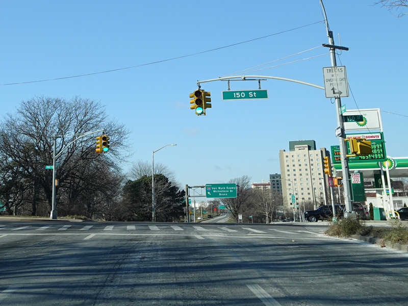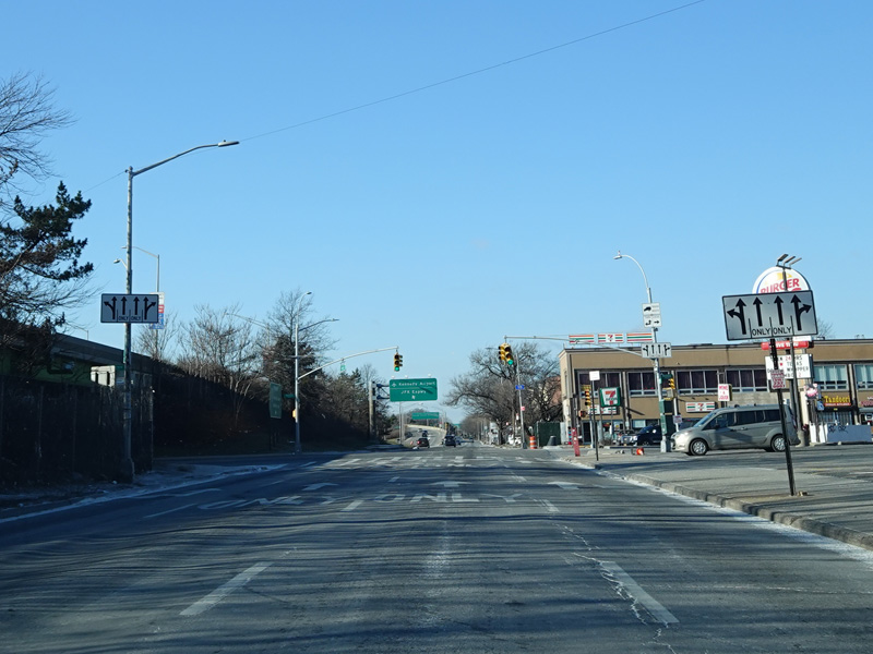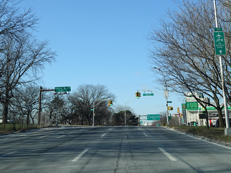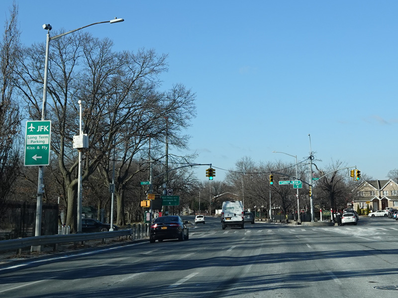 There is a traffic light at Rockaway Boulevard. There is no oversized street name sign, despite it being a major roadway.