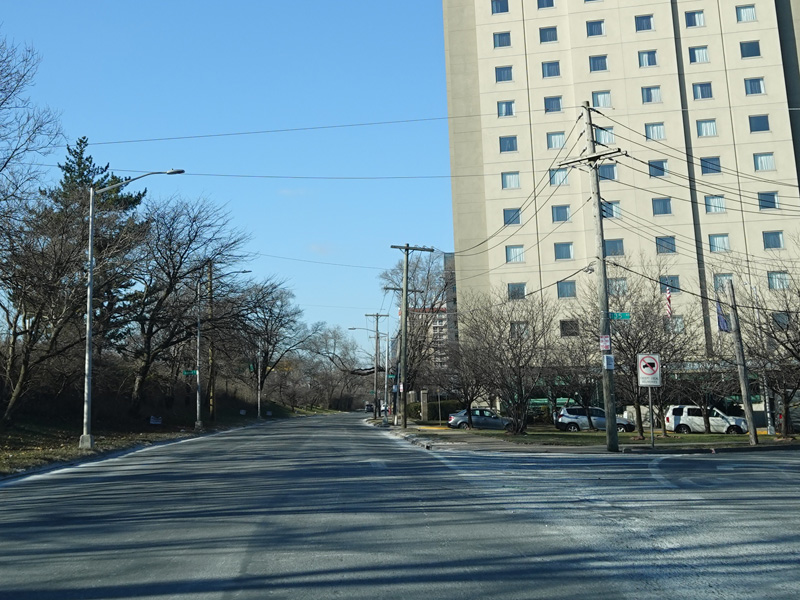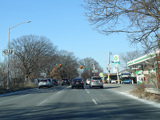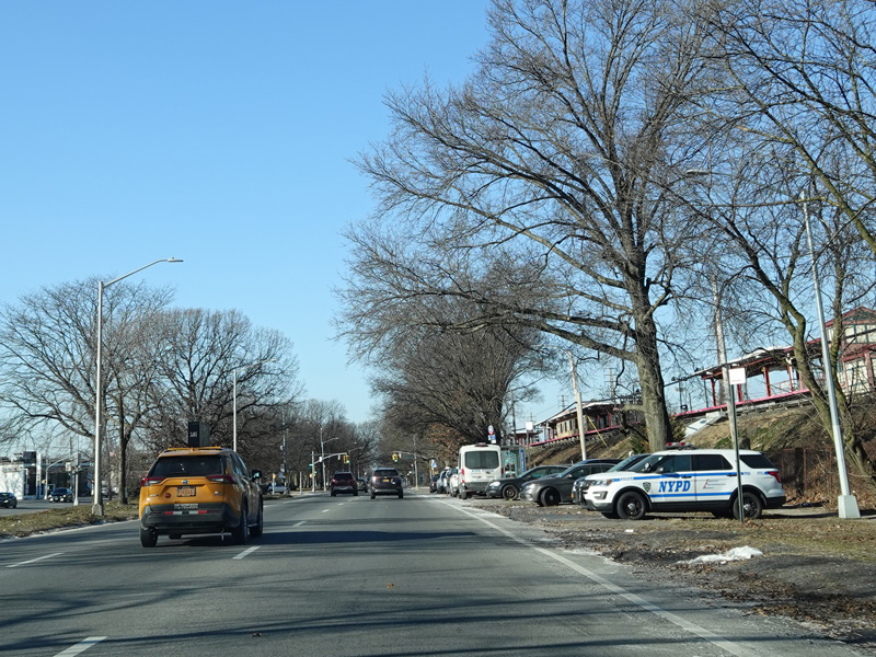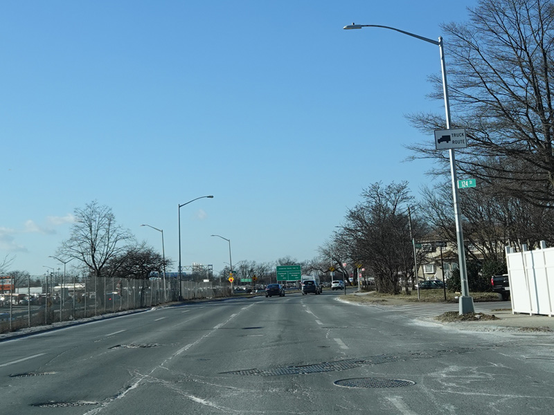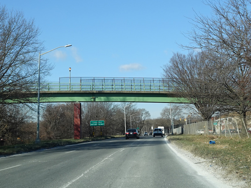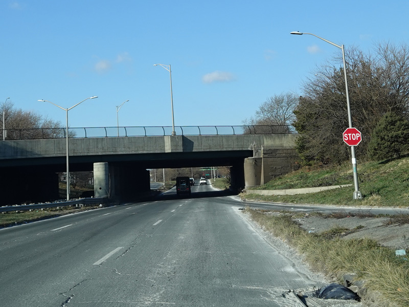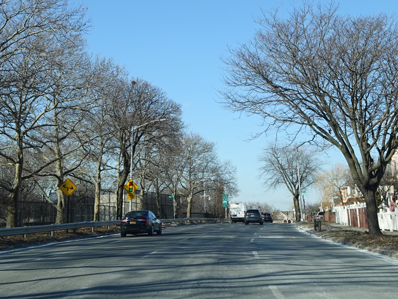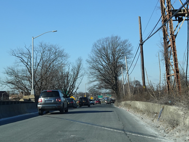 There is an entrance to the Belt Parkway on the left.