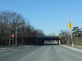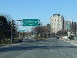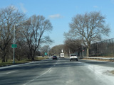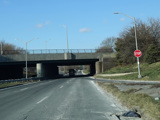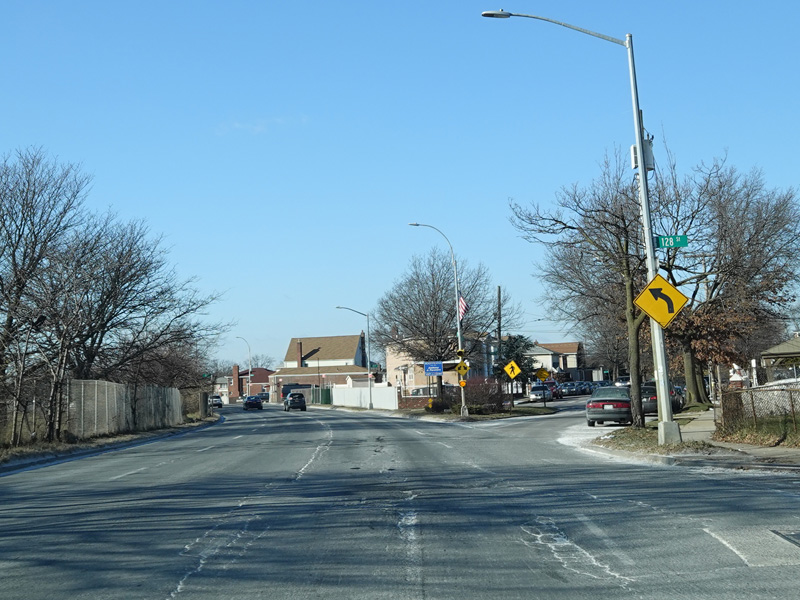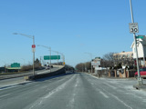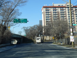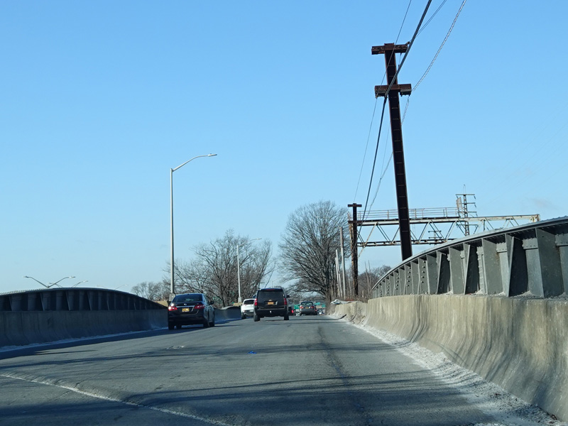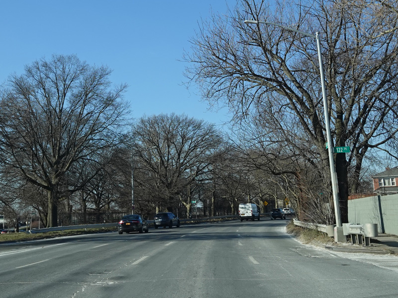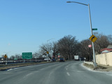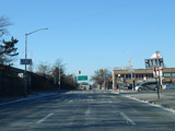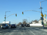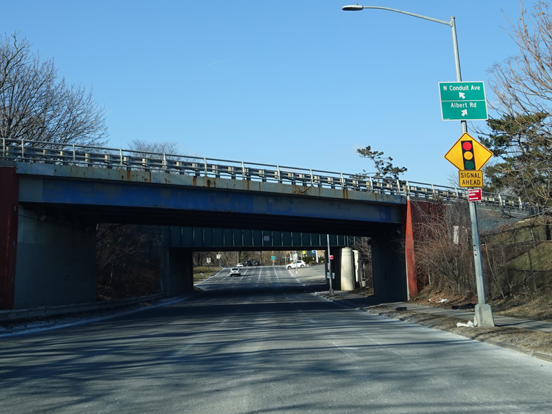 Bear left to stay on North Conduit Avenue as it passes under the ramp from the Nassau Expressway (NY 878) to the Van Wyck Expressway (I-678).