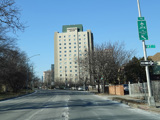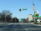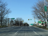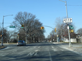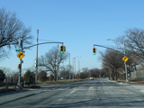 There is a traffic light at Springfield Boulevard. There is no oversized street name sign, despite it being a major roadway.