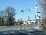 The ramp from exit 17N of the Belt Parkway merges in from the left. There is a traffic light at Cohancy Street. Albert Road splits off to the right just after the light.