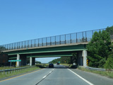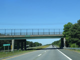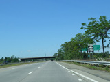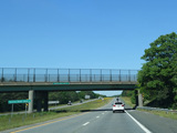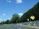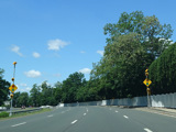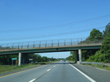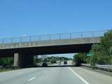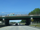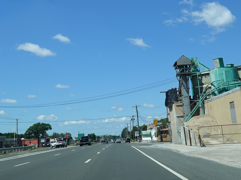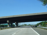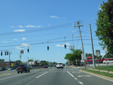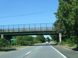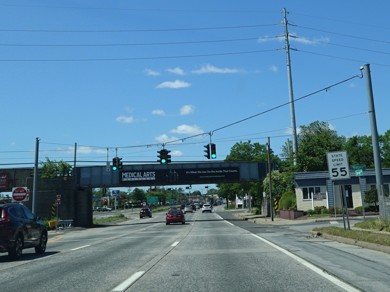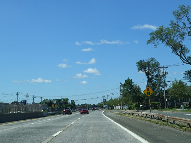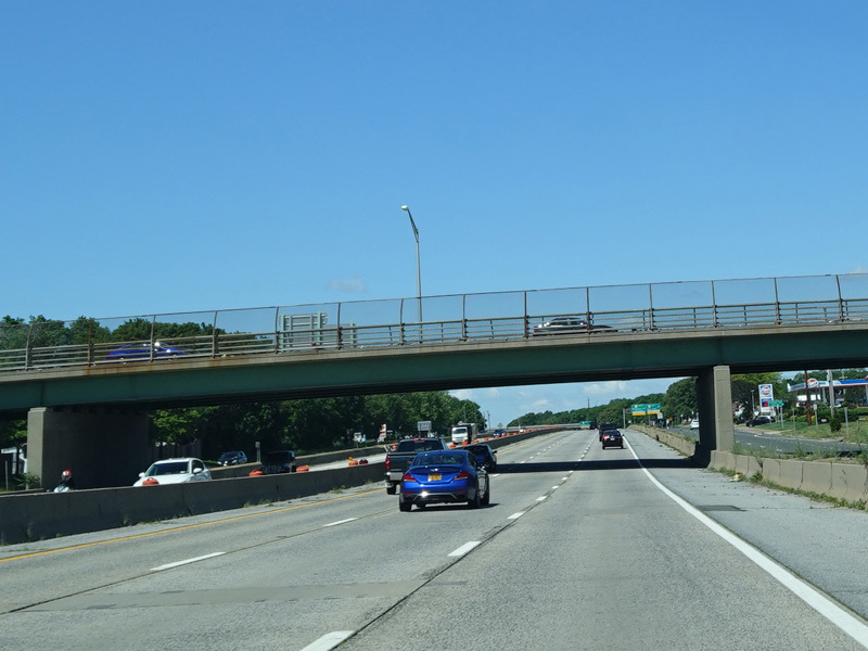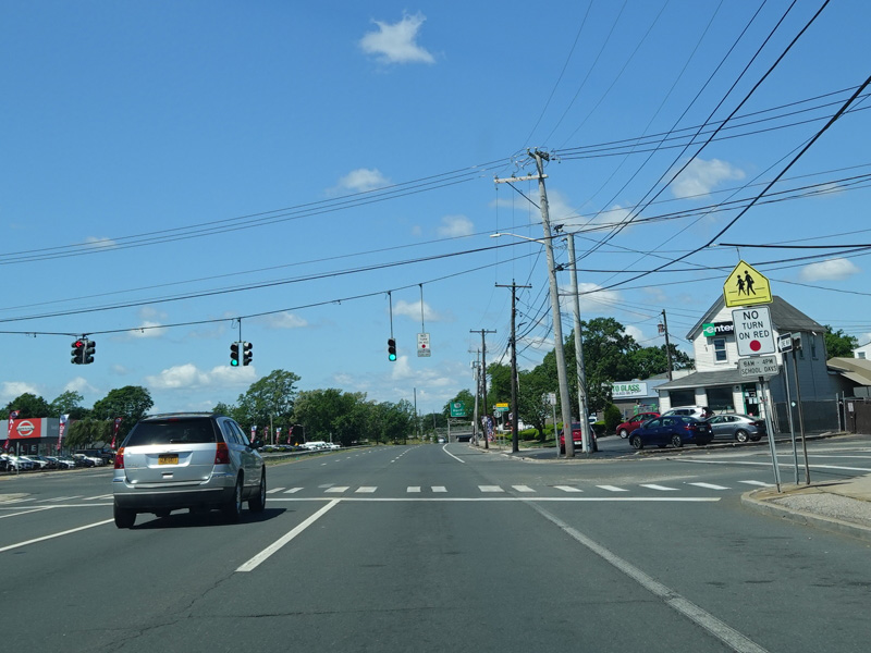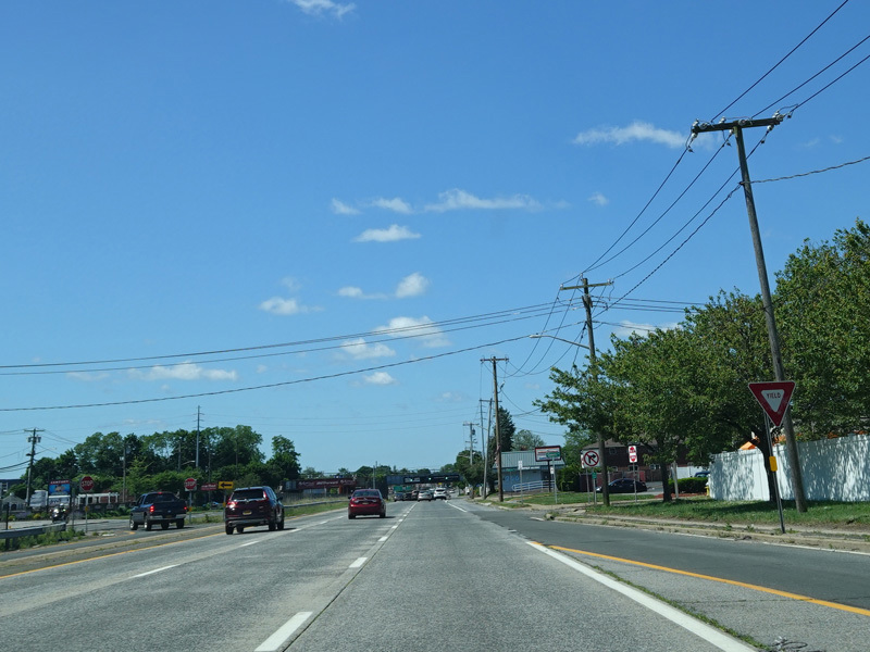 After the first traffic light, Sunrise Highway passes under the Central Branch of the Long Island Rail Road.