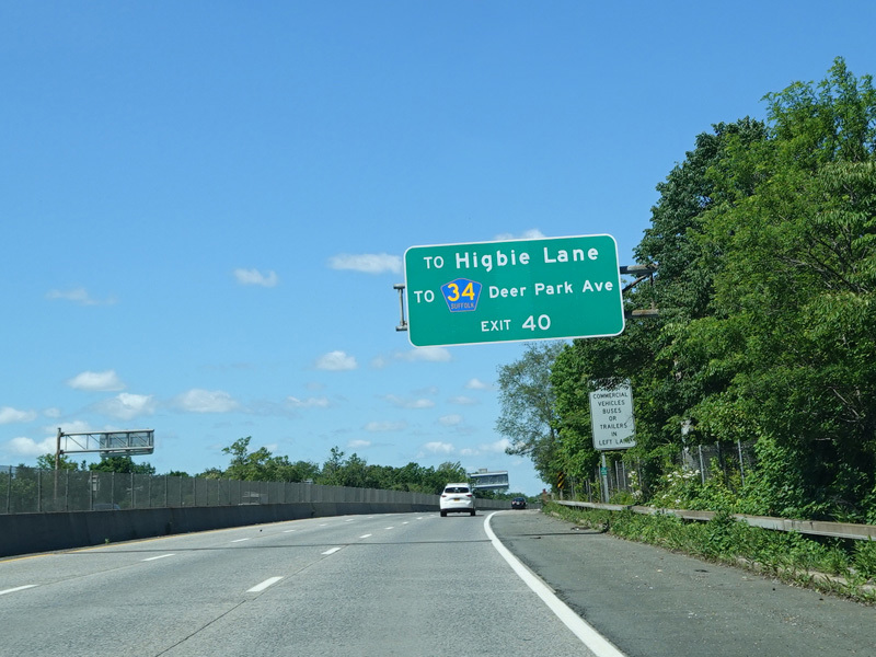 Exit 40 is for the Babylon-Northport Expressway (NY 231). It also provides access to Higbie Lane and Deer Park Avenue (CR 34).