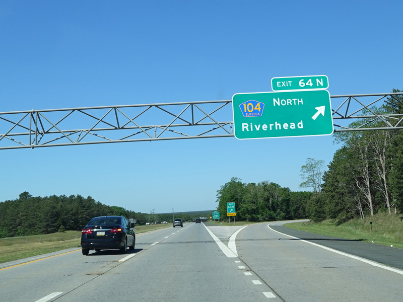 Exits 64N-S are for Quogue-Riverhead Road (CR 104).