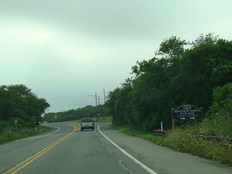 East Lake Drive begins on the right. Turn right here for Montauk Airport.