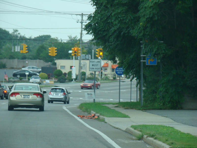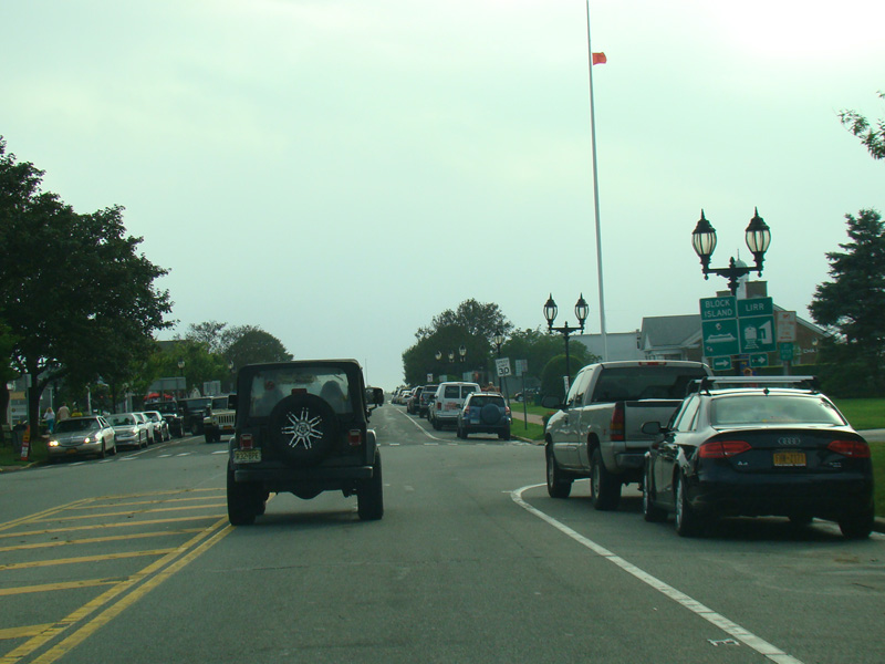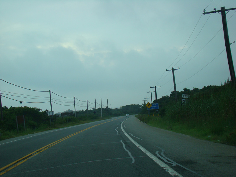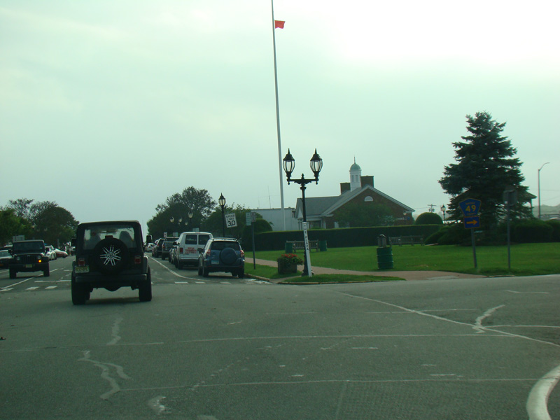 Montauk Highway comes into Montauk village. There is a turnoff to the right for Edgemere Street (CR 49), which begins here.