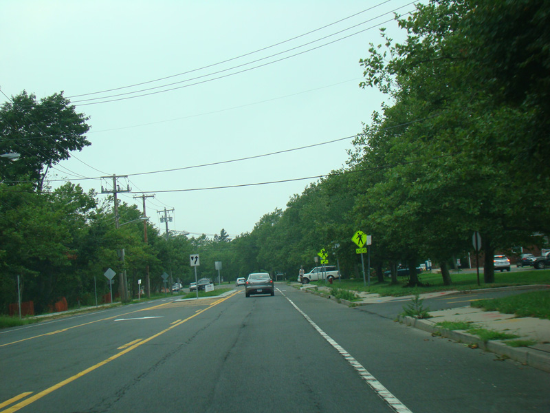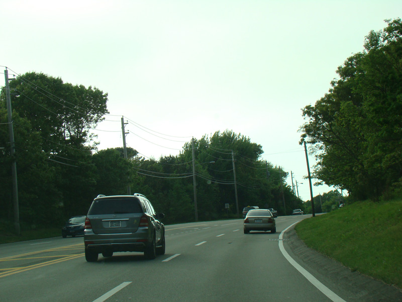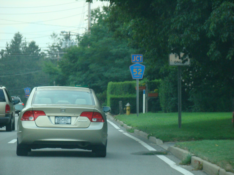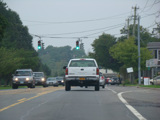 North Road widens to four lanes. After a short distance, Sandy Hollow Road (CR 52) begins on the right at a traffic light.