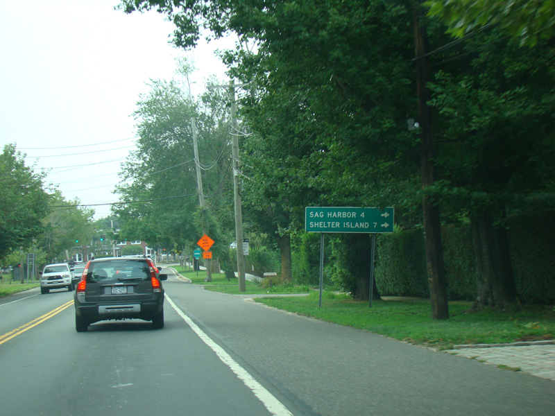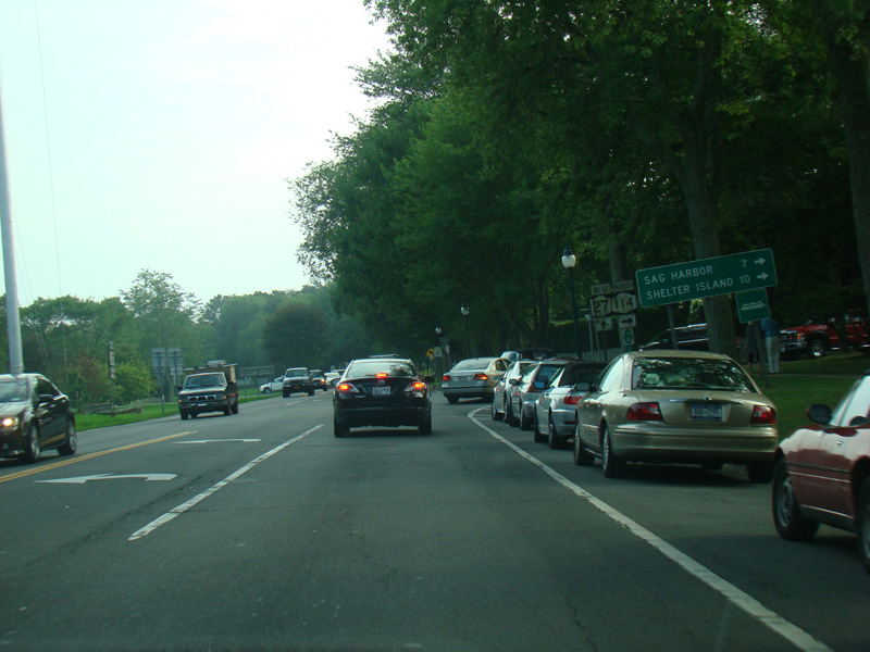 After a short distance, Montauk Highway narrows down to two lanes again. NY 114 begins on the right and runs north from here to Sag Harbor and Shelter Island.