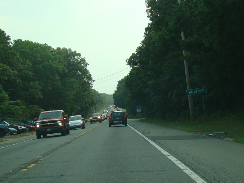 Montauk Highway runs through Wainscott. There is a parking area on the right.