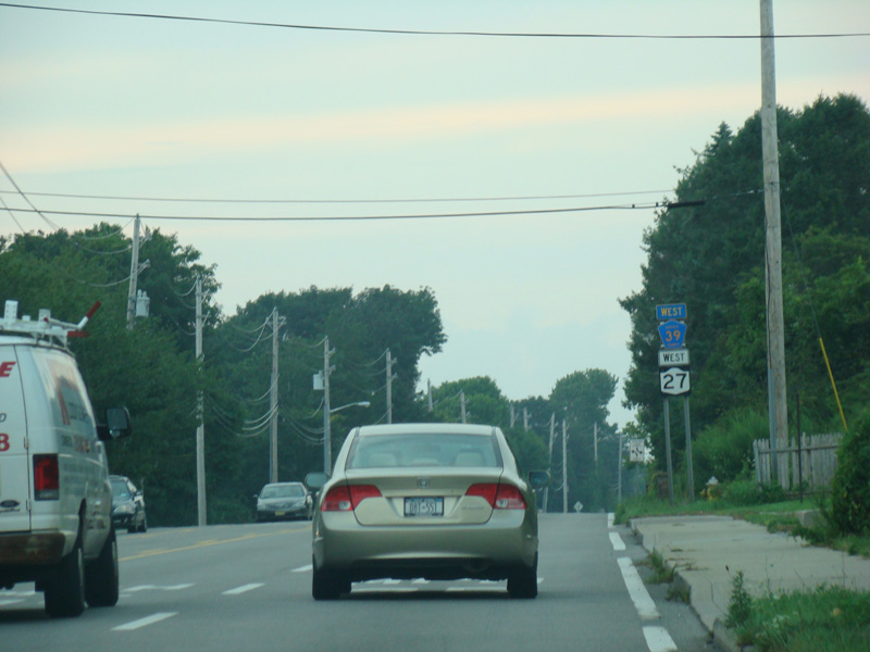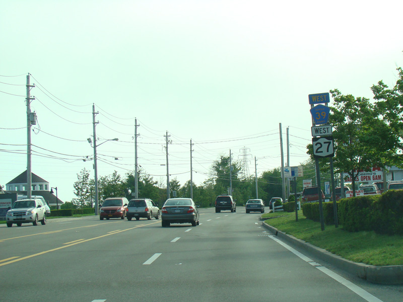 CR 39A is multiplexed with NY 27 for its entire length, which is less than a mile. It then changes both name and number to become North Road (CR 39). NY 27 is multiplexed with CR 39 for most its length.
