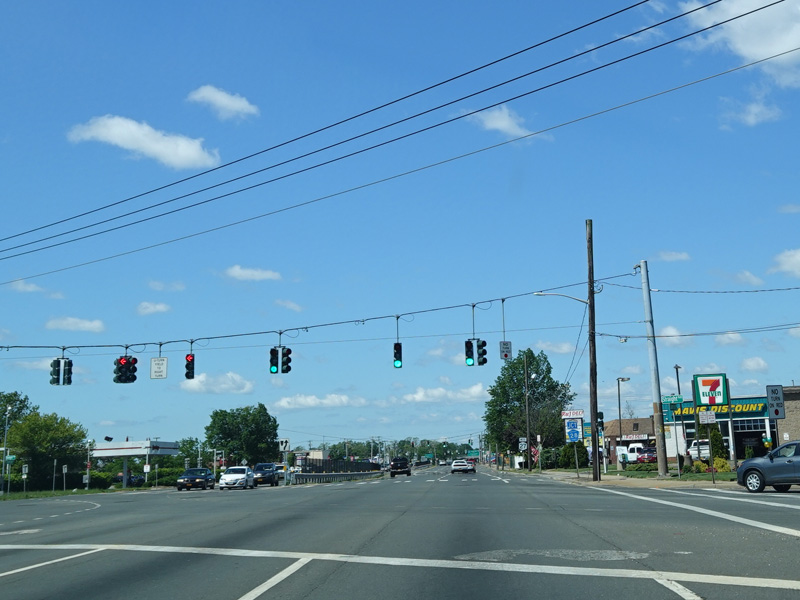 North Sea Road (CR 38) begins on the right at this traffic light.