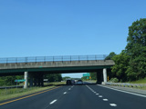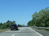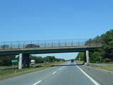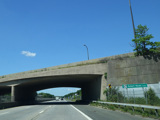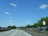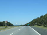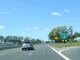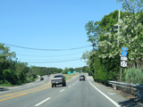 A small bridge carries Sunrise Highway over the Shinnecock Canal. Immediately after the bridge, there is a parking area.