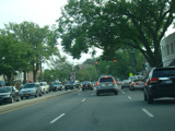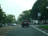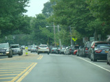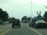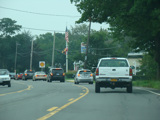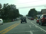 North Main Street merges in from the right, and Montauk Highway widens to four lanes in East Hampton's main business district.