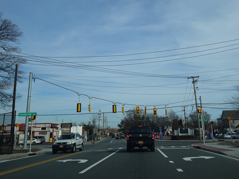 The section of Old Sunrise Highway east of where NY 27A turns south onto Carman Mill Road has a reference route number of 900D. It ends after a few blocks at a traffic light at County Line Road (Suffolk CR 1). Oak Street (Suffolk CR 12) begins straight ahead.