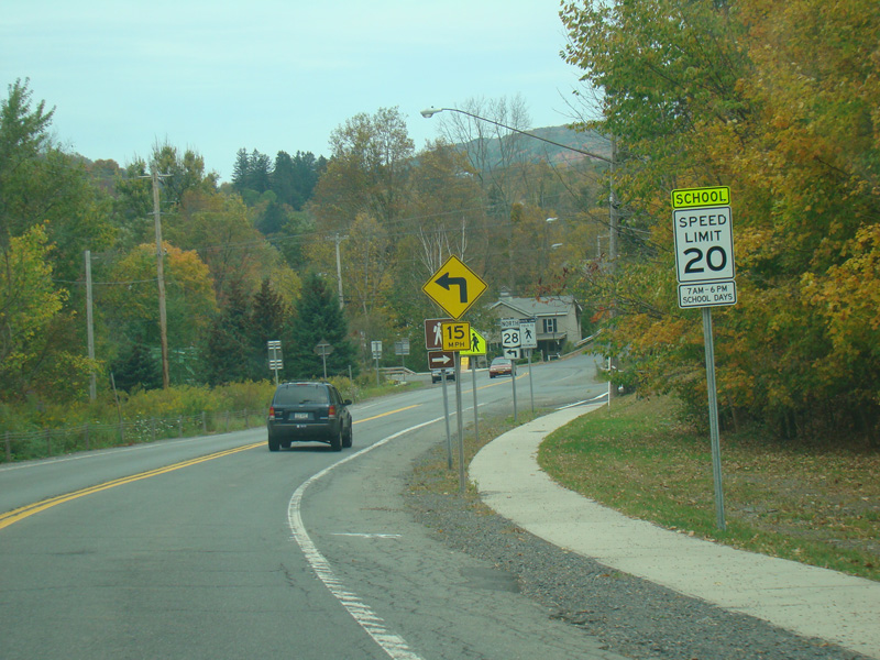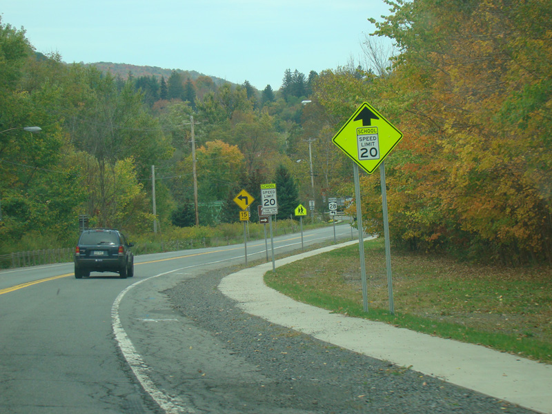 Colonel Chandler Drive, Onteora Trail, Main Street, Delaware Avenue, Andes Road, Kingston Street, Meredith Street, South Main Street, North Main Street, Chestnut Street, Glen Avenue, West Lake Road, Prospect Street, Columbia Street, Warren Street, East Main Street, Caroline Street, State Street, Middleville Road