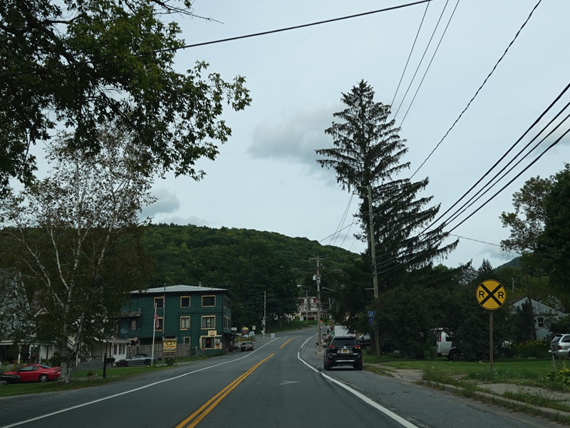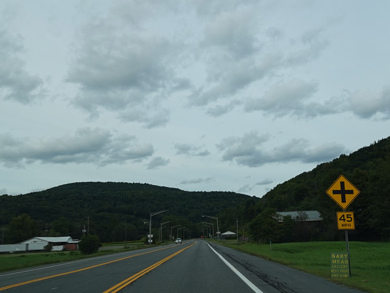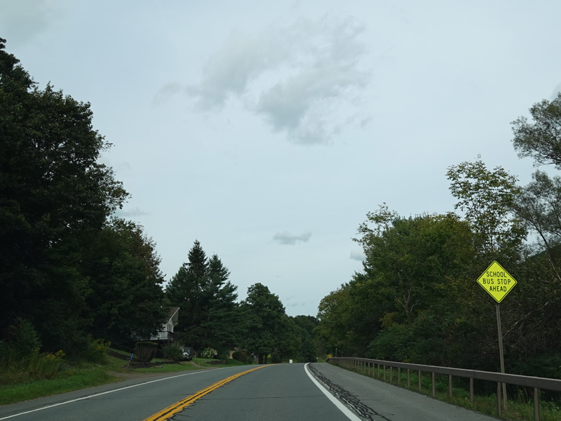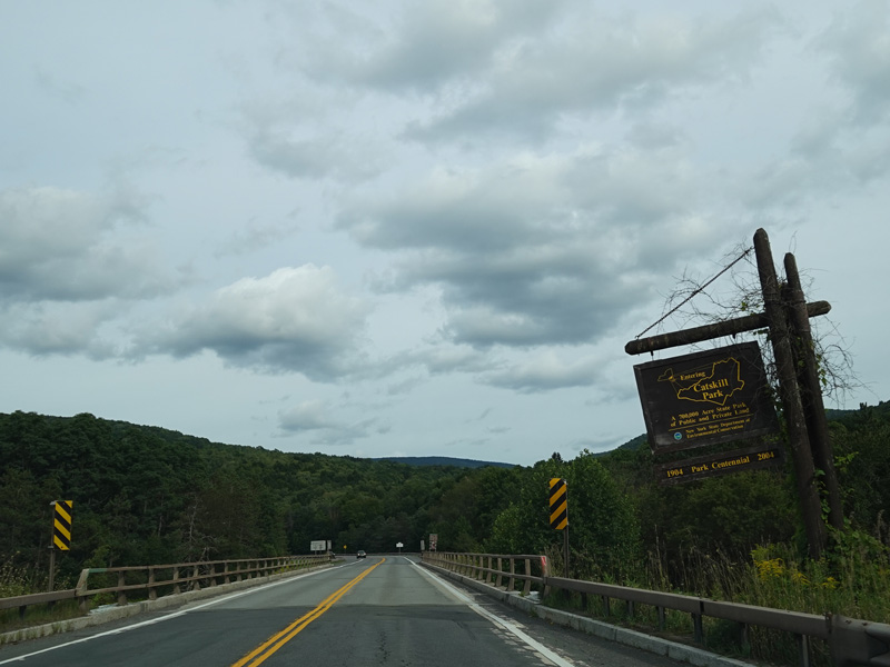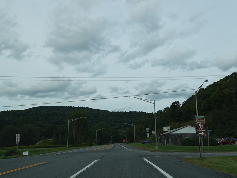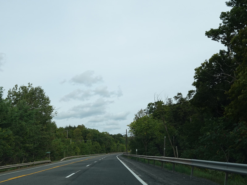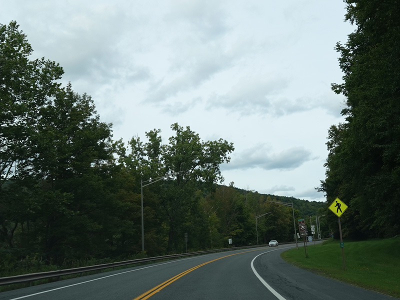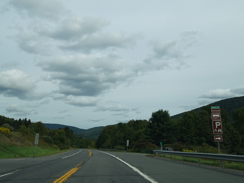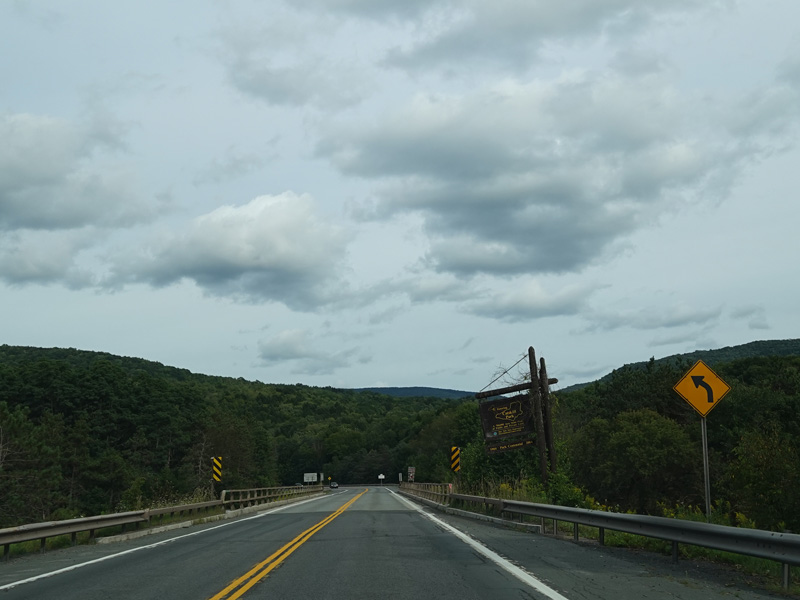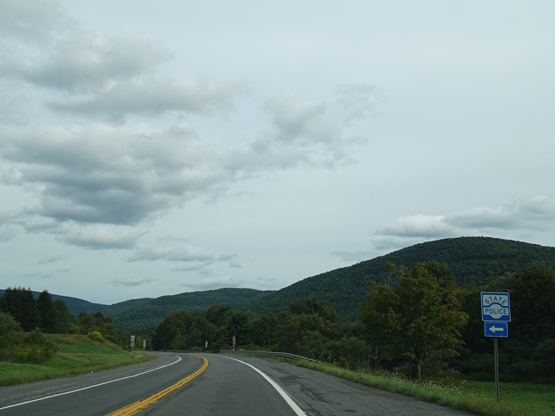 Skipping south to Margaretville, NY 28 is multiplexed with NY 30. It runs east through the mountains as a two-lane undivided road.